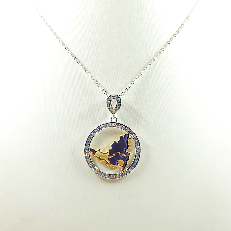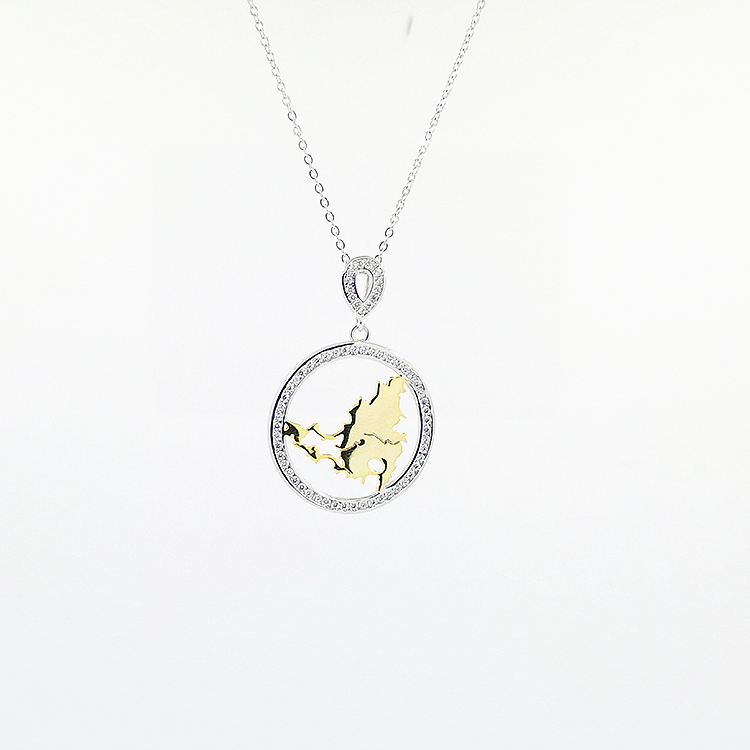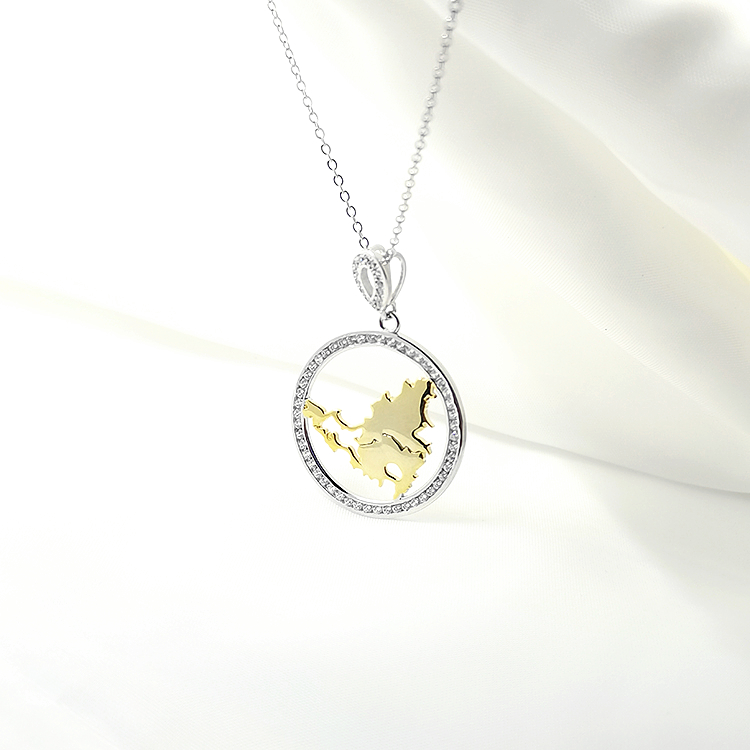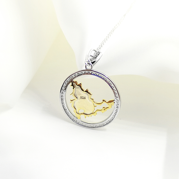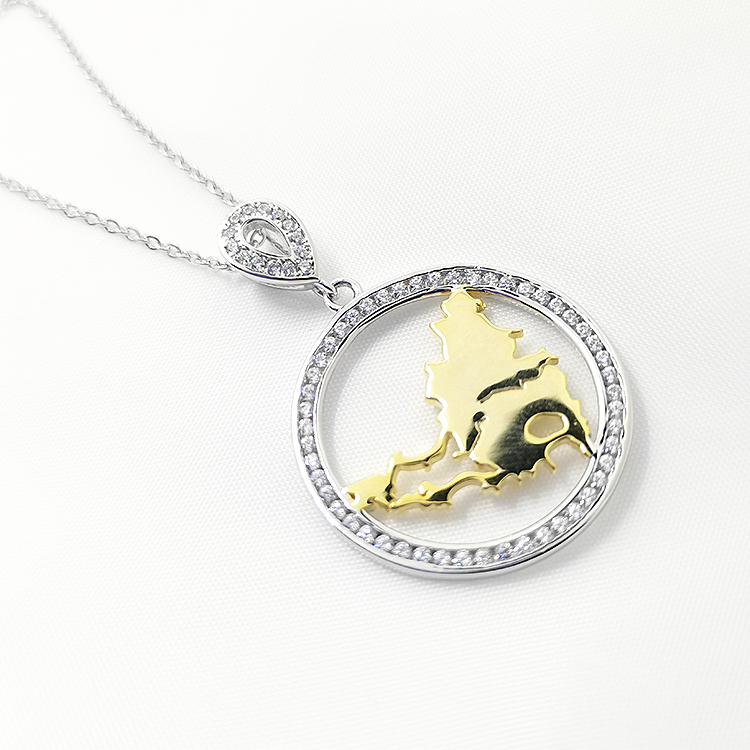 Custom Gold Necklace Women Jewelry Gold Plated Map Design Circle Sterling Silver Pendant Necklace