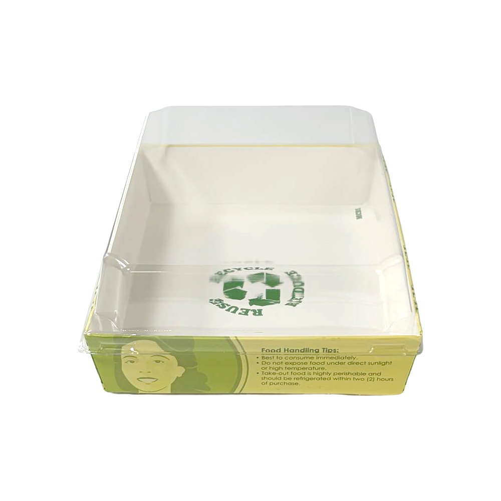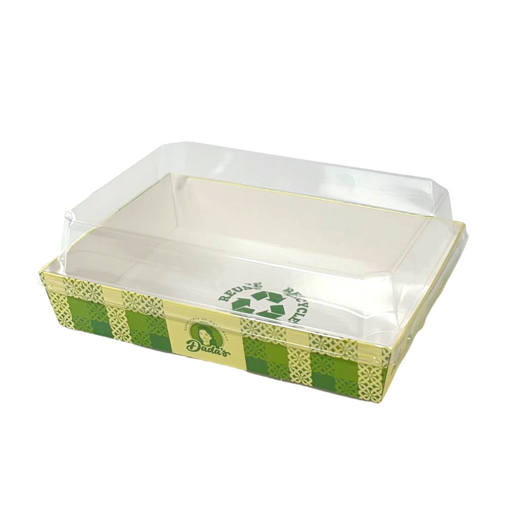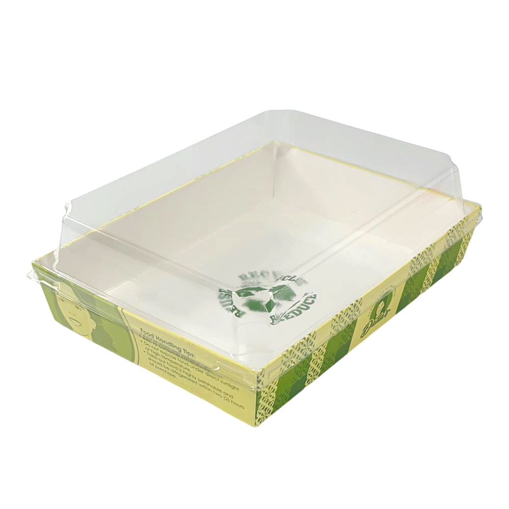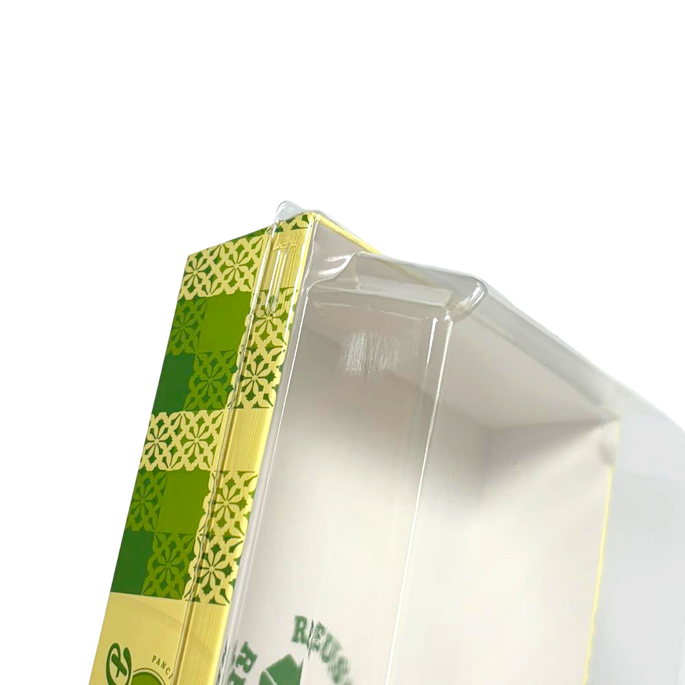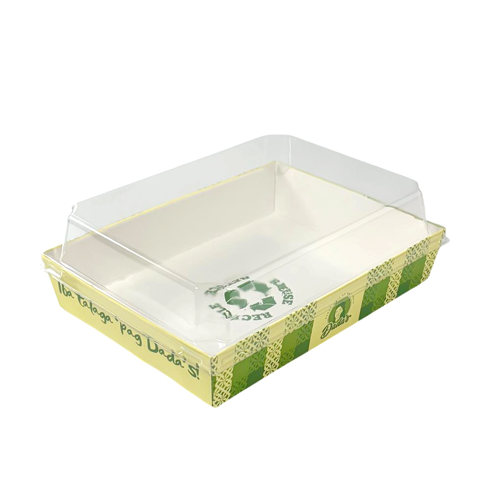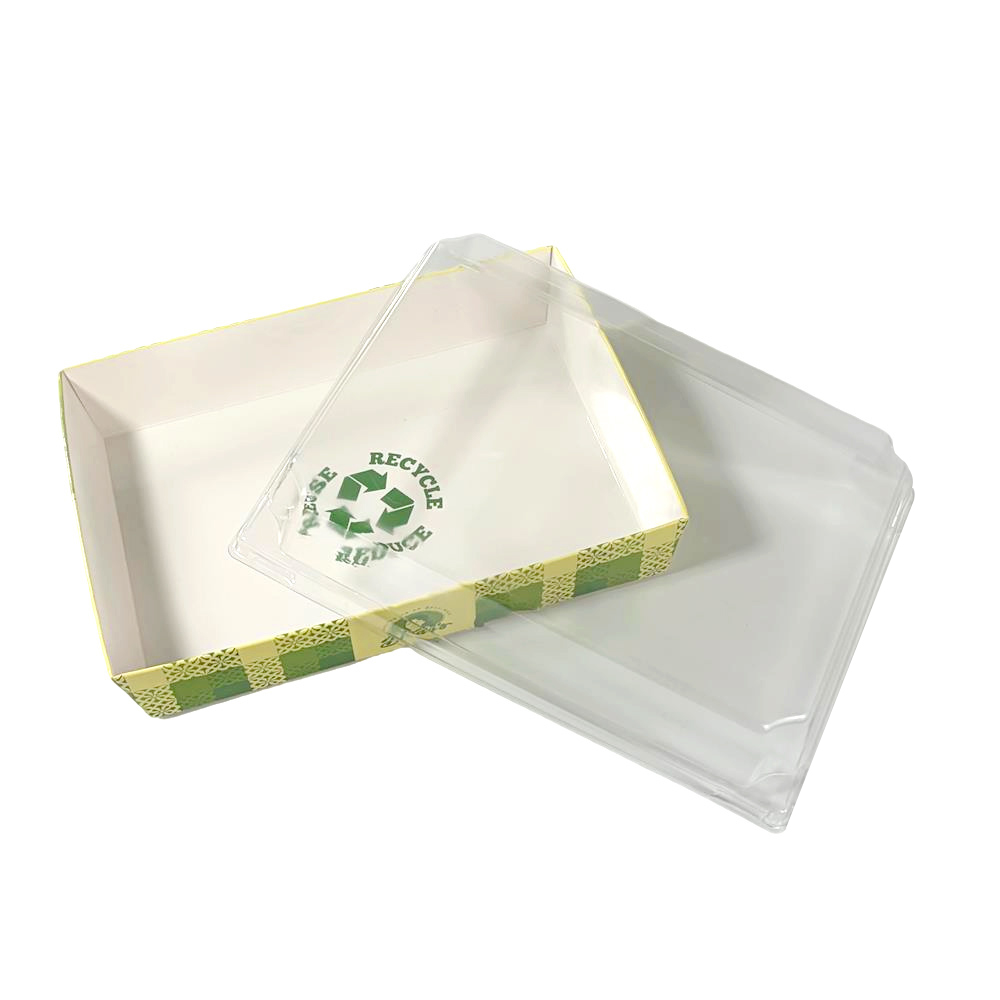 Custom Green Color Factory Rectangle Pie & Cake Take Out Containers Paper Base with Plastic clear Lids Food Box