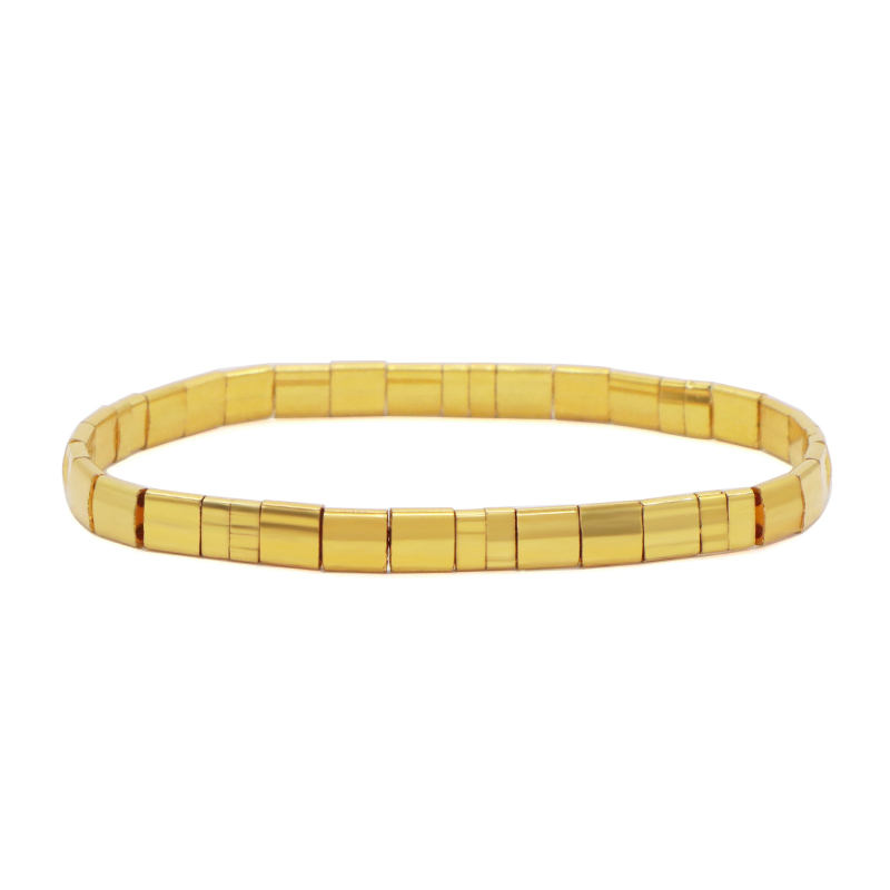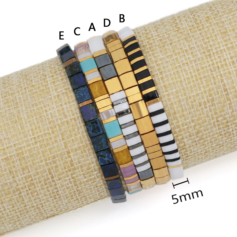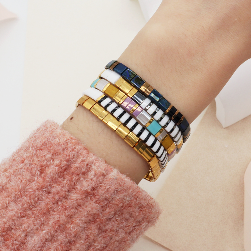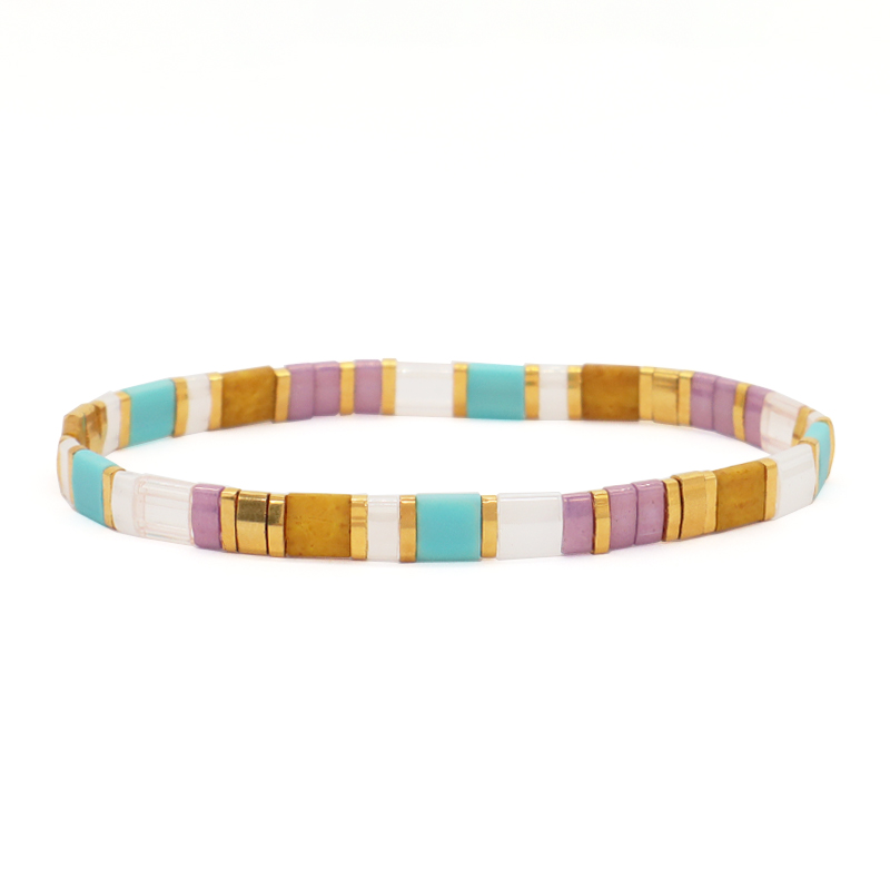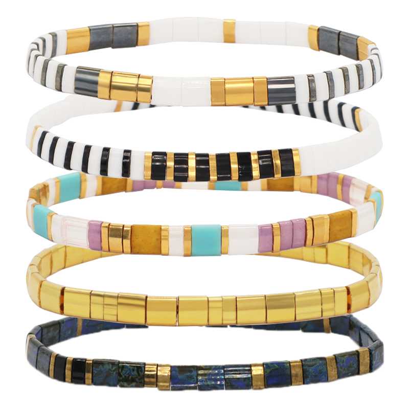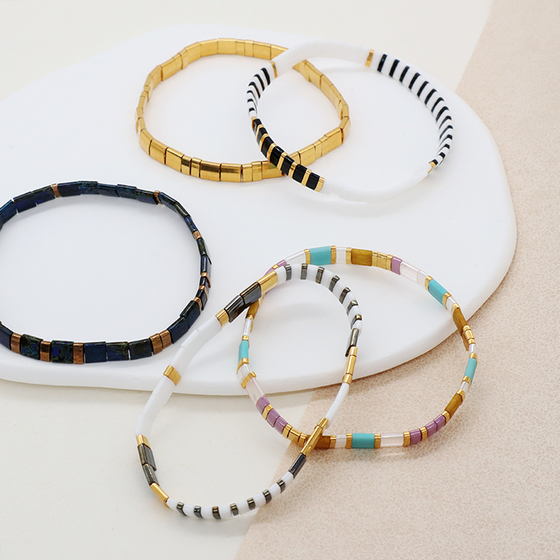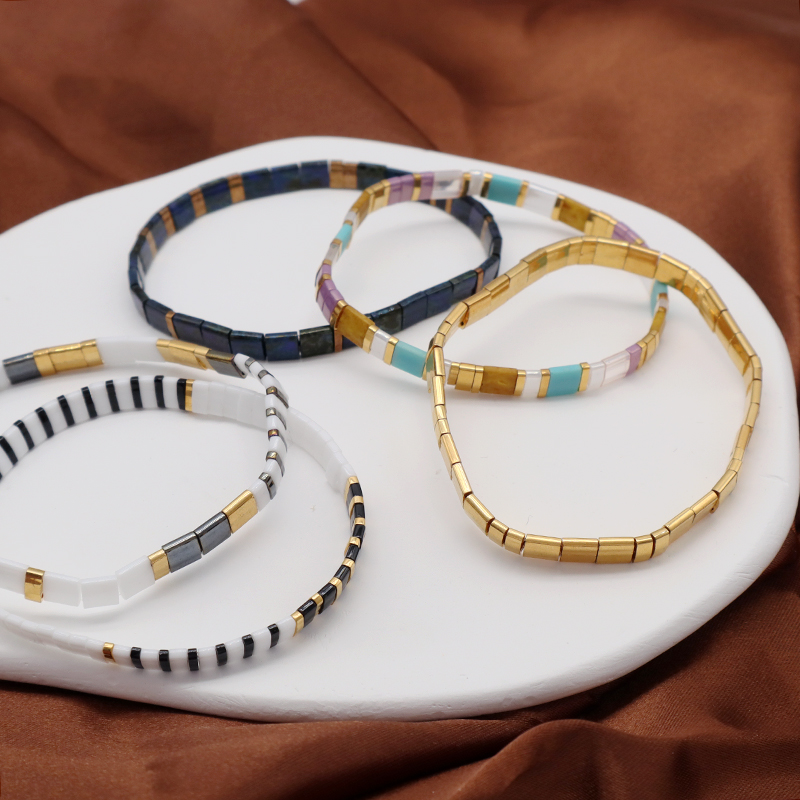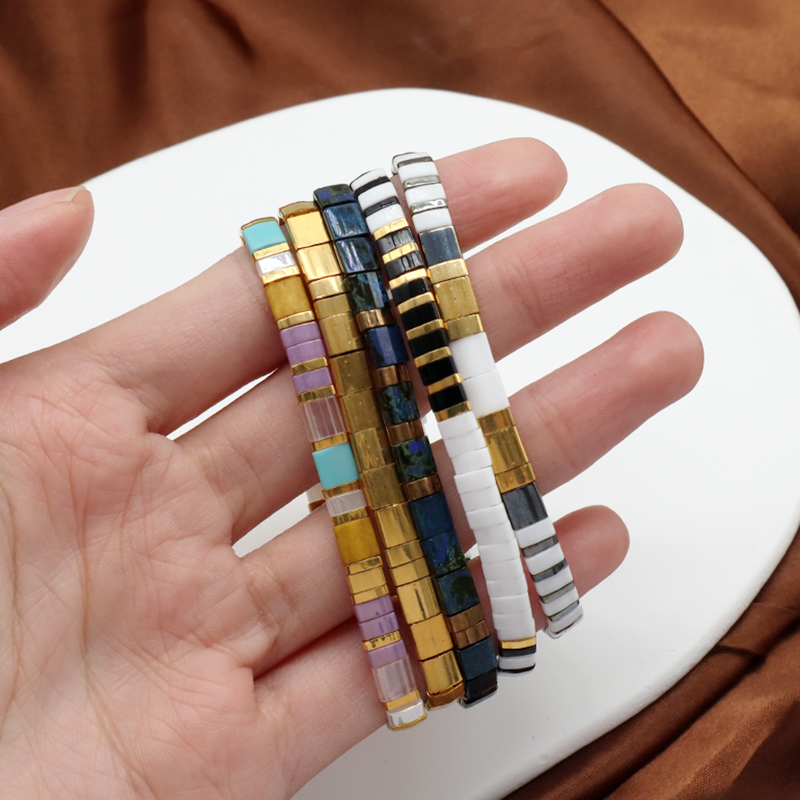 Custom Handmade Colorful Boho Miyuki Jewelry Gift Elastic Flat Tile Miyuki Tila Beads Bracelet