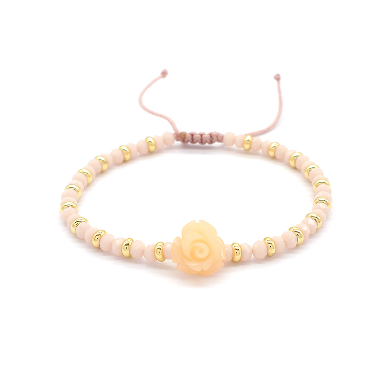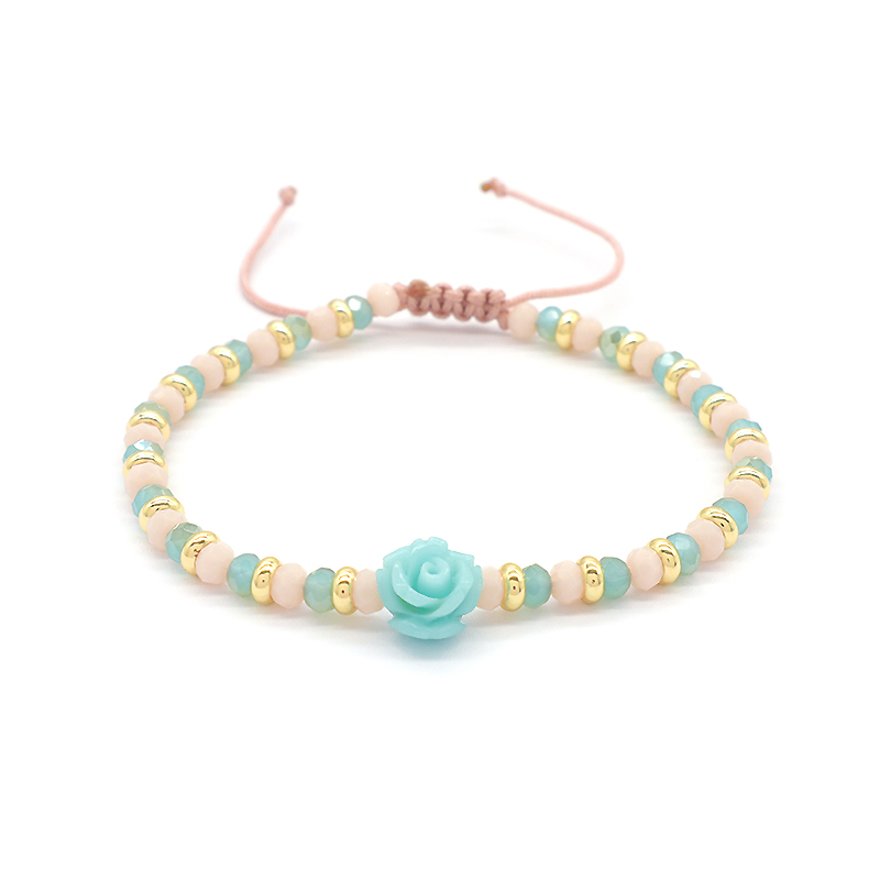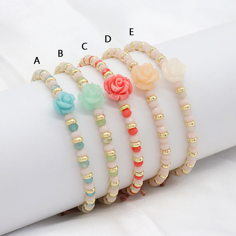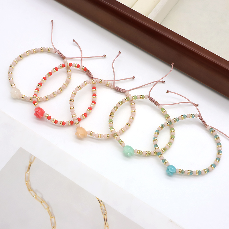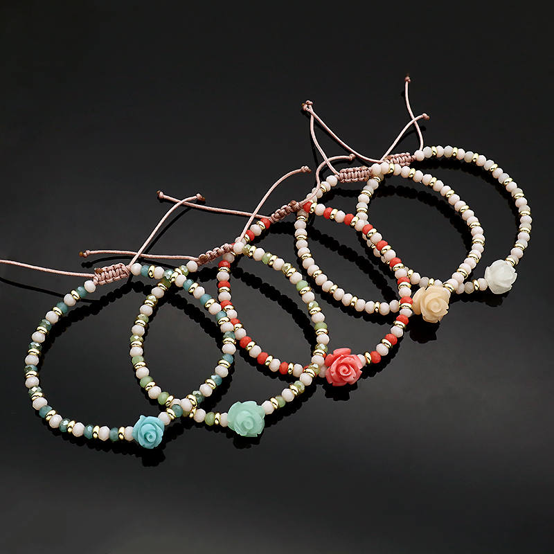 Custom Handmade Macrame Adjustable Resin Flower Charm Glass Crystal Beads Bracelet