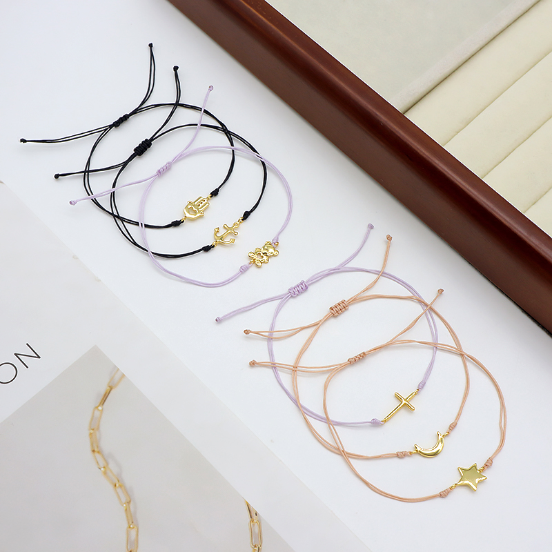 Custom Handmade OEM Adjustable Hand-Woven Thread 925 Sterling Silver Charms Braided Colorful Cotton Wire Bracelet