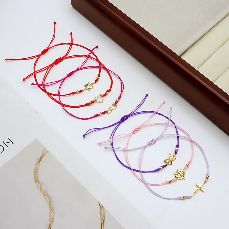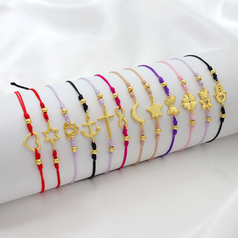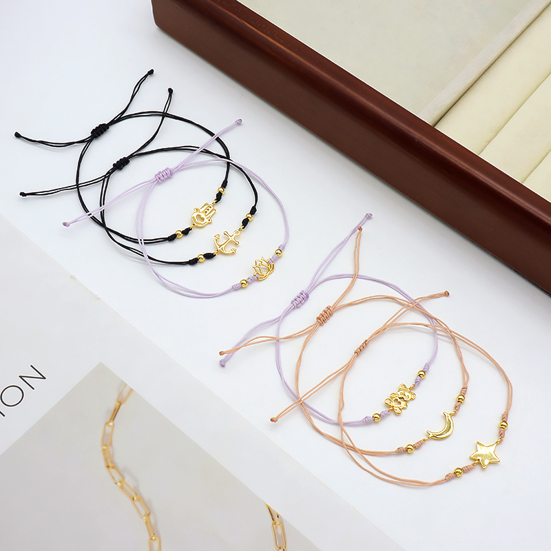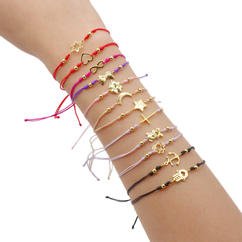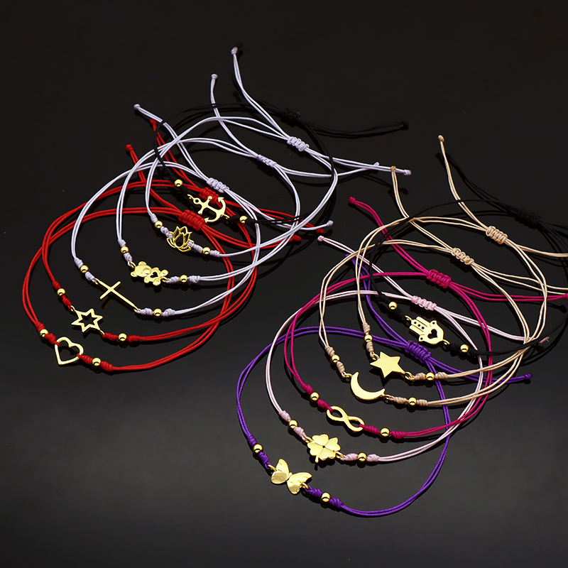 Custom Handmade OEM Adjustable Hand-Woven Thread Plated Gold 925 Sterling Silver Charms Braided Colorful Cotton Wire Bracelet