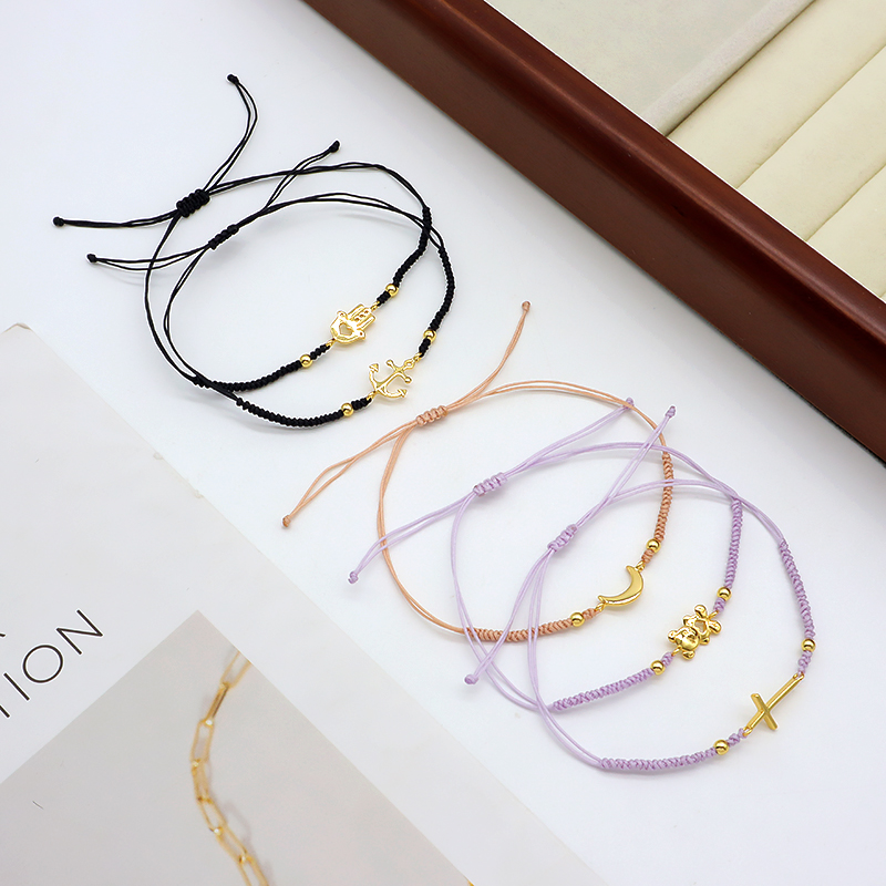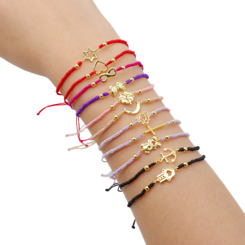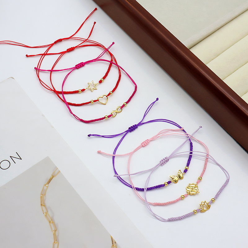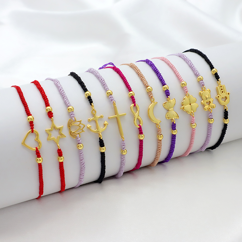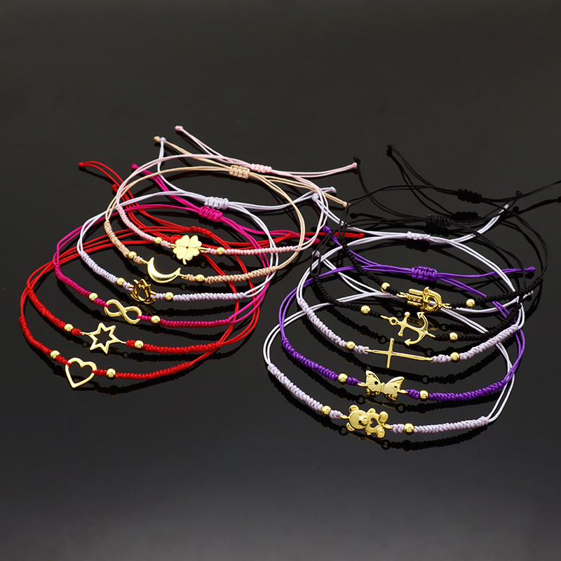 Custom Handmade OEM Adjustable Hand-Woven Thread Plated Gold 925 Sterling Silver Charms Braided Colorful Cotton Wire Bracelet