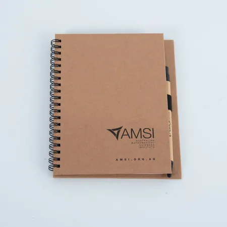 Recycled materials. Spiral notebook with matching ballpoint pen. Includes 60 ruled pages and matching color elastic pen loop.