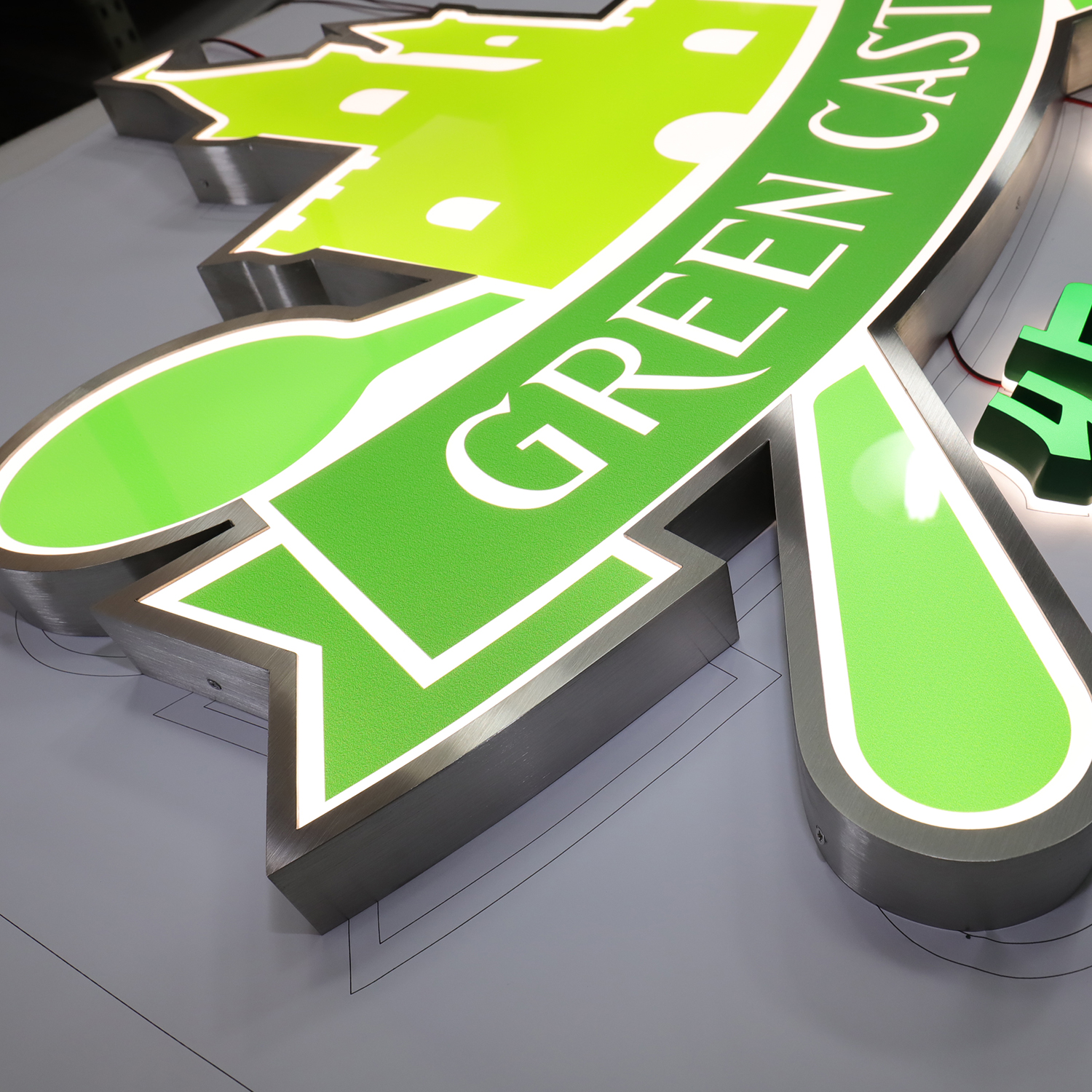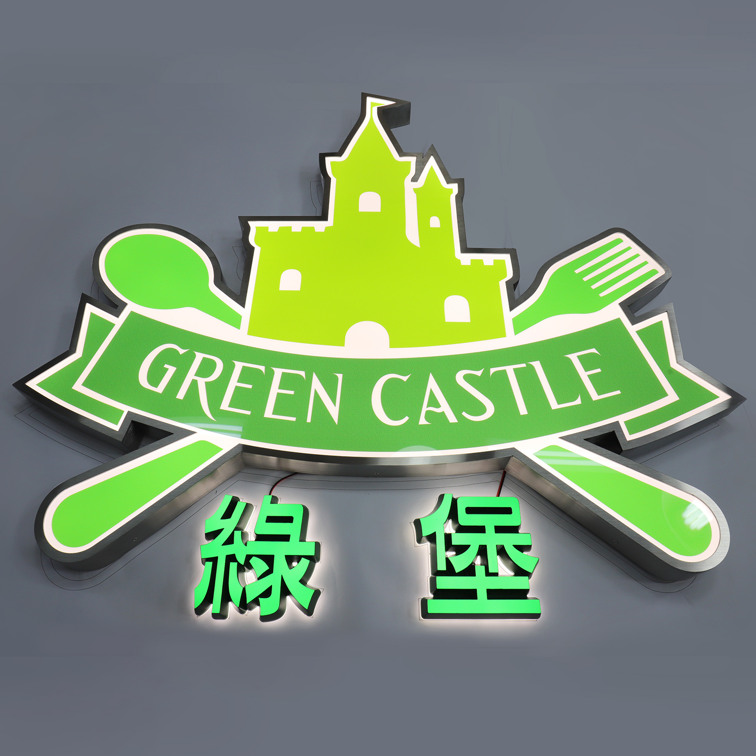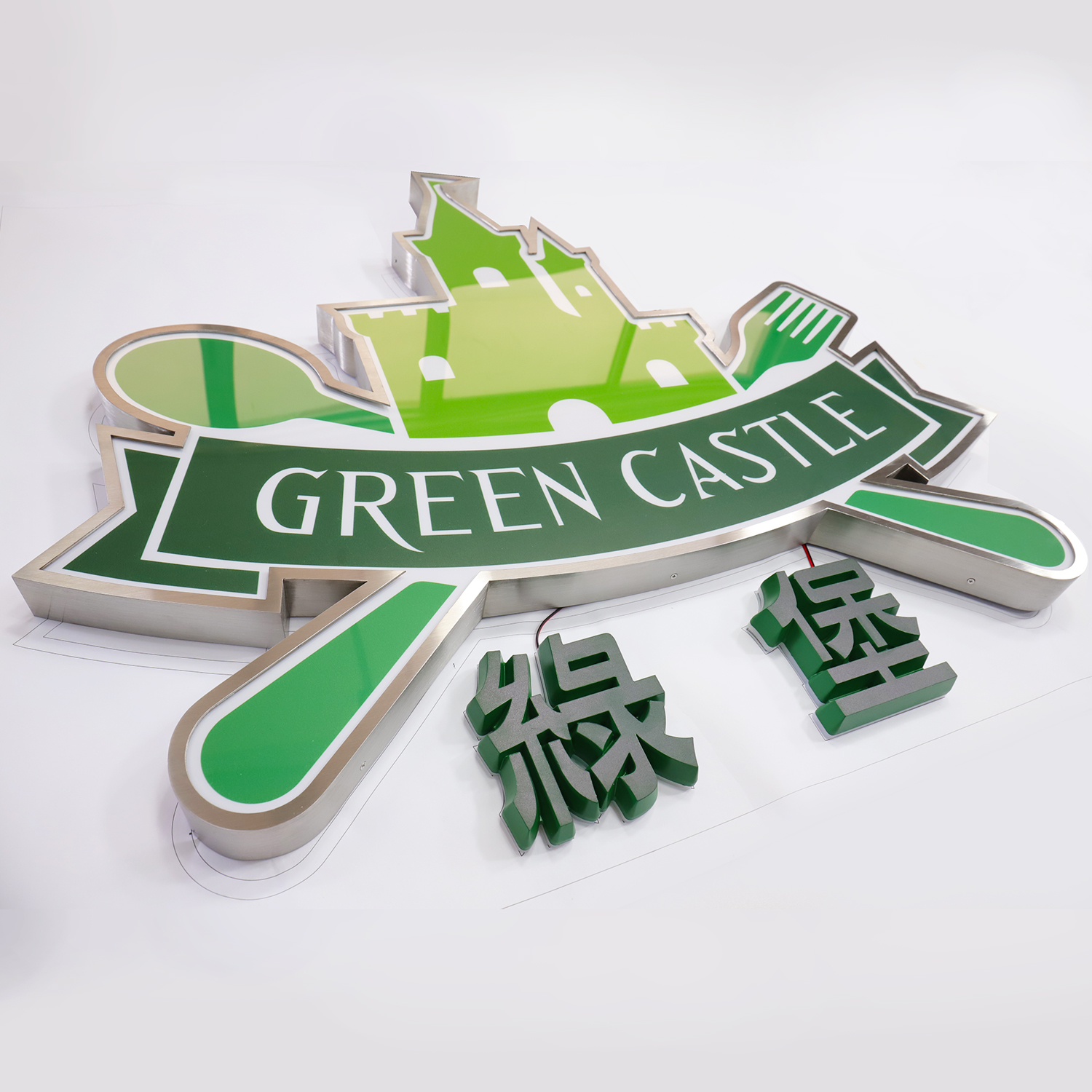 The Greencastle Logo is producted by UV-PET film between two pieces of acrylics.