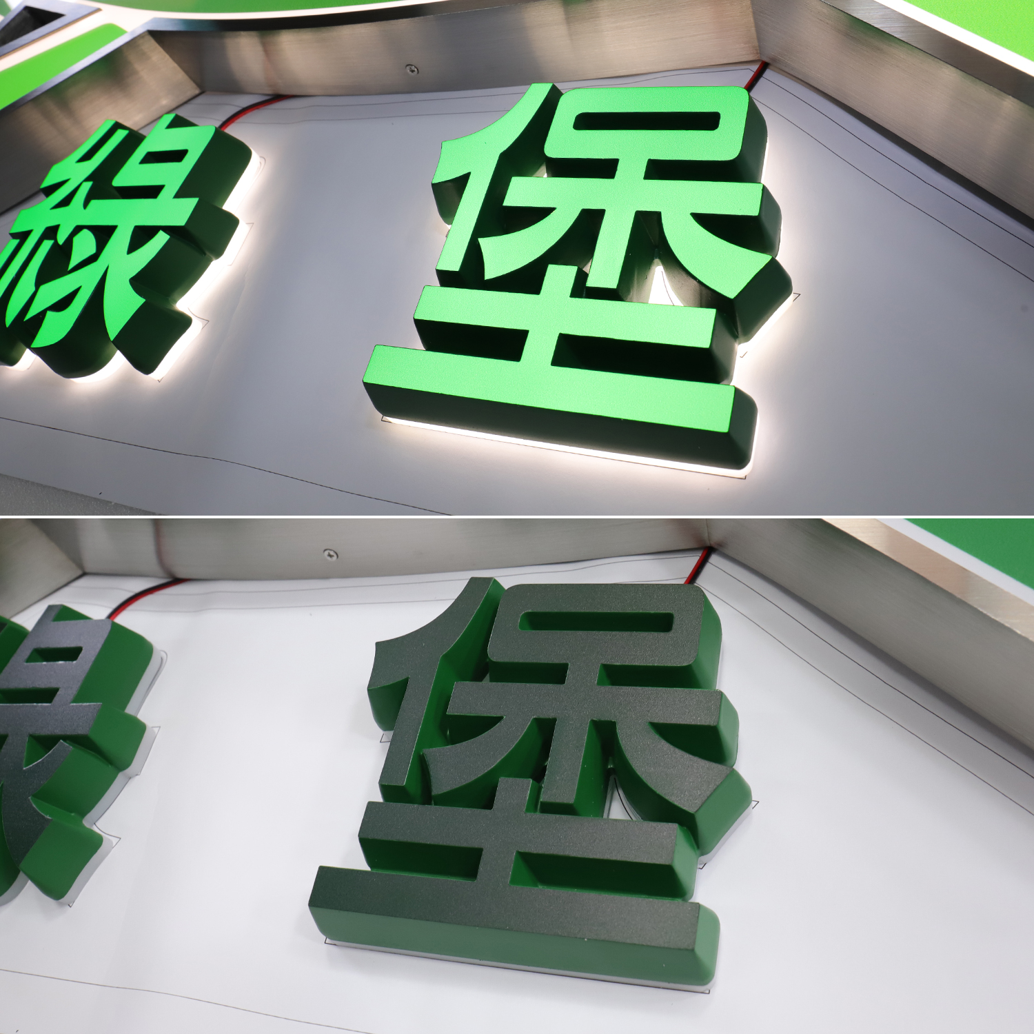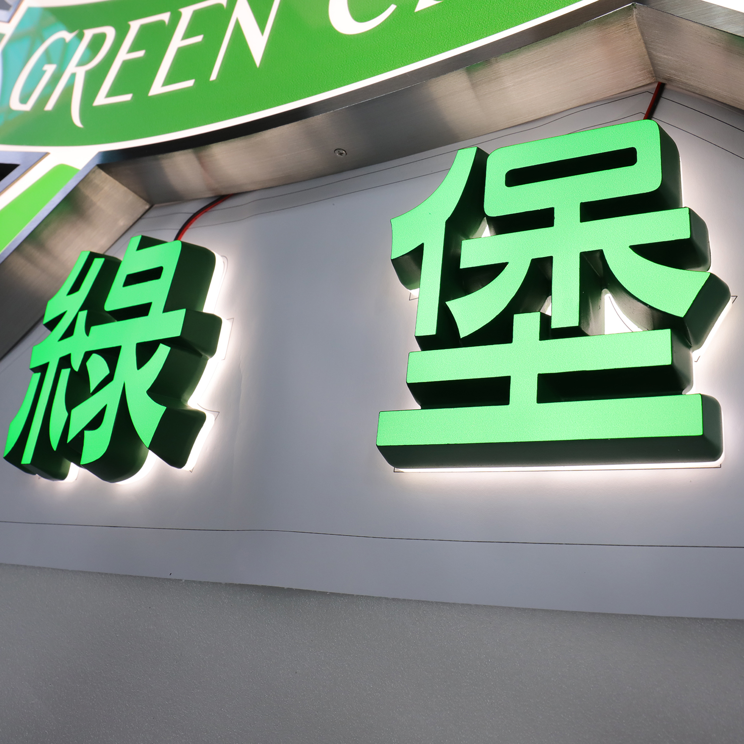 The Luminous font of the Chinese character is front-lit & side-lit and it is producted by Acrylic. The Front is UV Painted and the Side is Painted by CMYK.