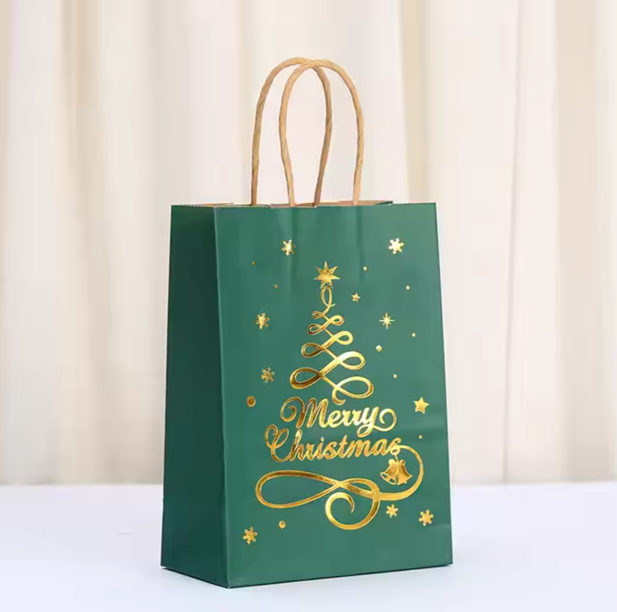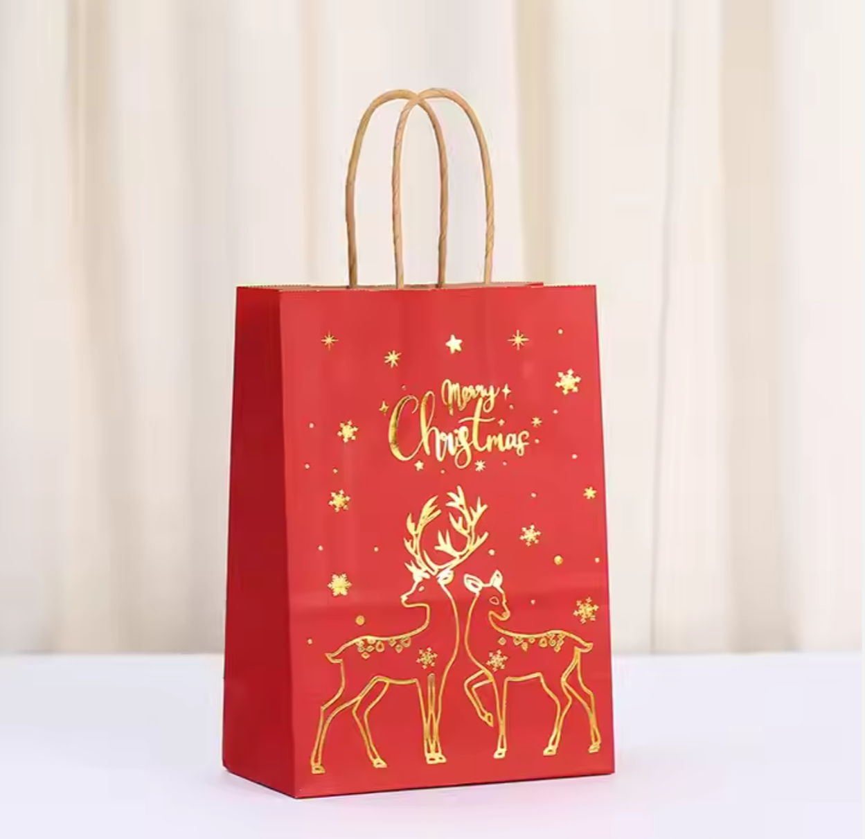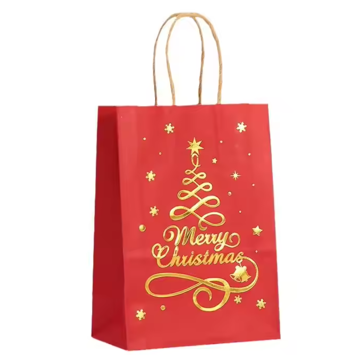 Custom Logo Christmas Kraft Paper Tote Bag for Clothing Socks Cross-Border Gilding Printing Hot Stamping for Milk Tea Holiday