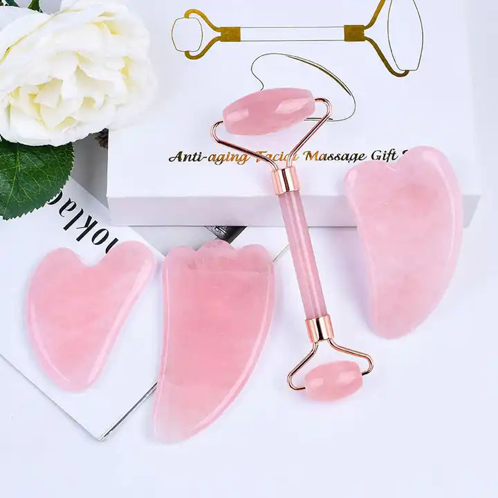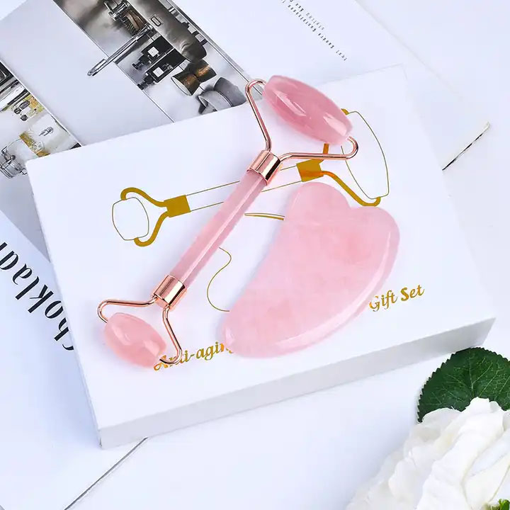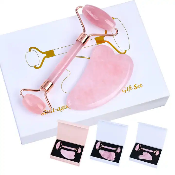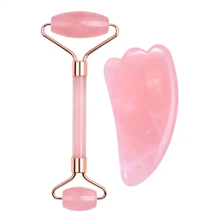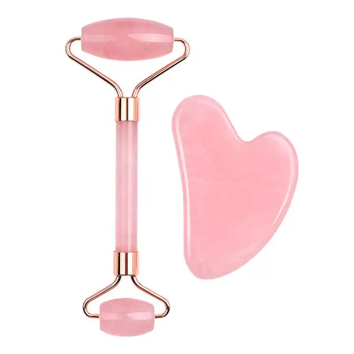 Rose Quartz Jade Roller And Gua Sha Massager Set