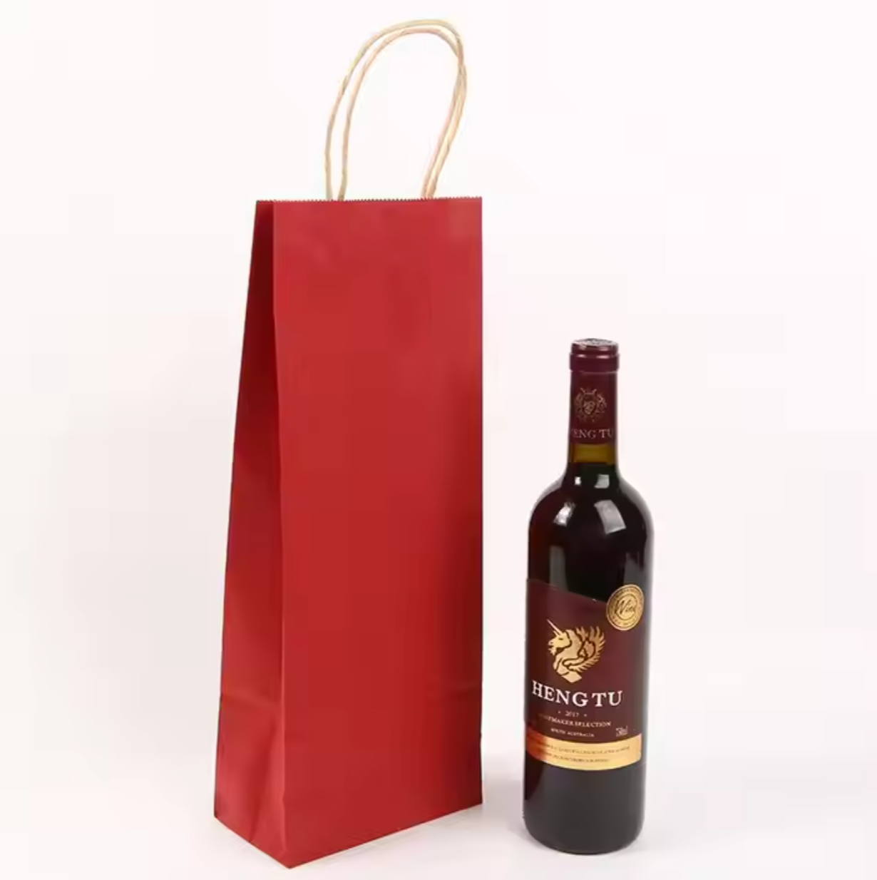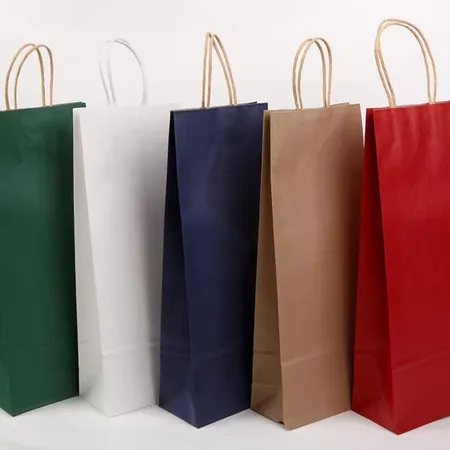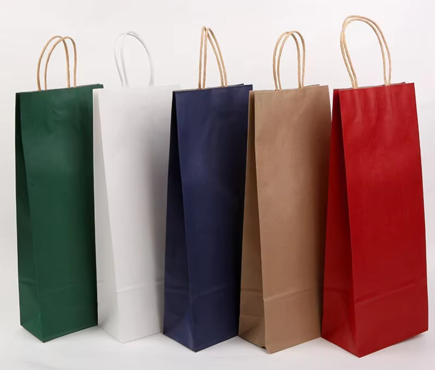Custom Logo Simple Self-Supporting Kraft Paper Wine Bag for Business Gifts Tea Packing Shipping Wine Handbag Paper Bag Promotion