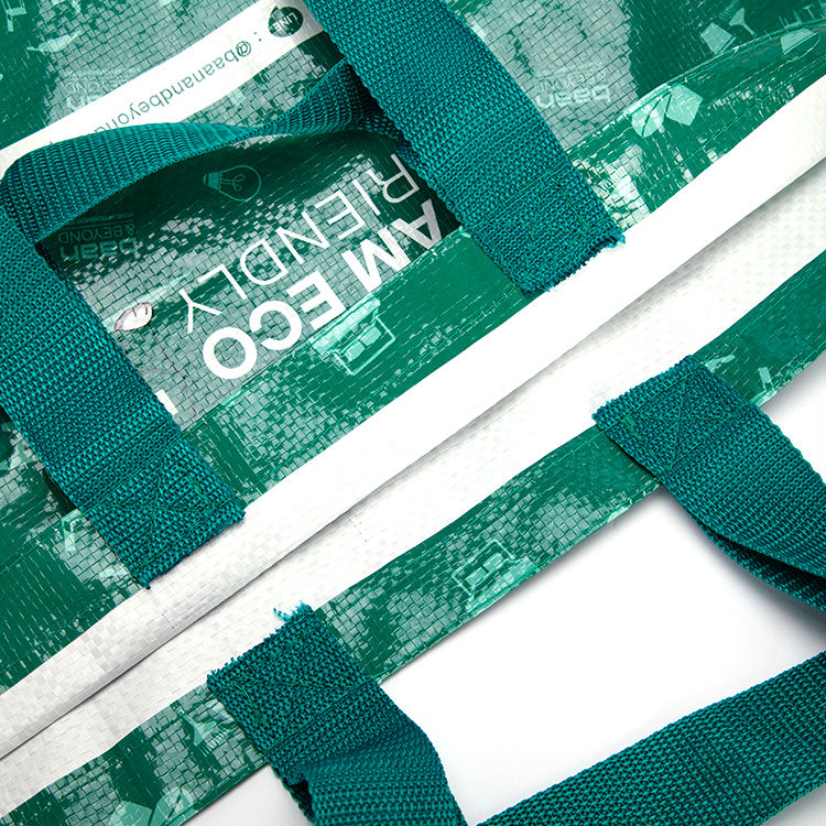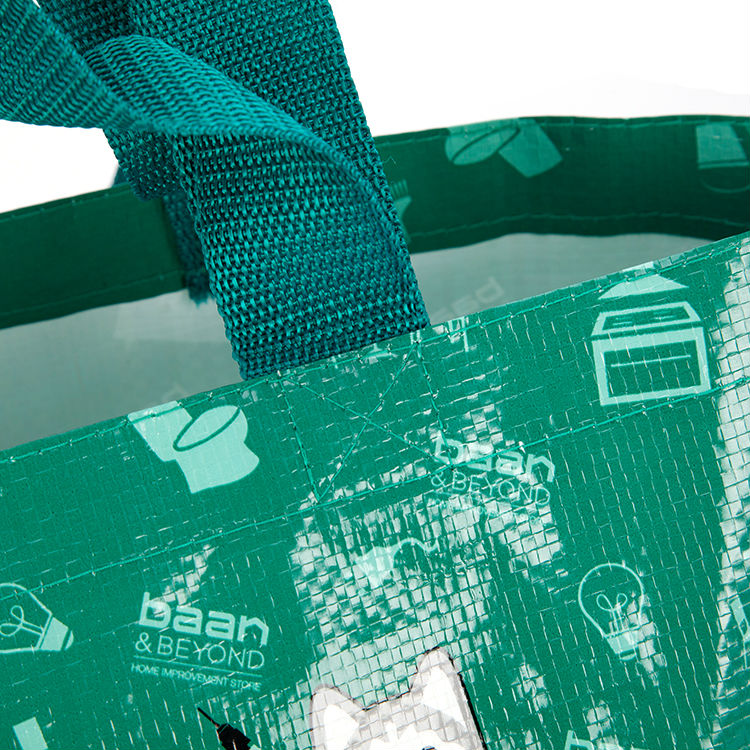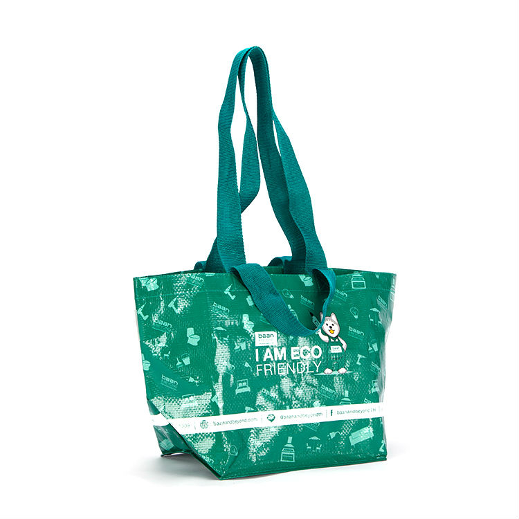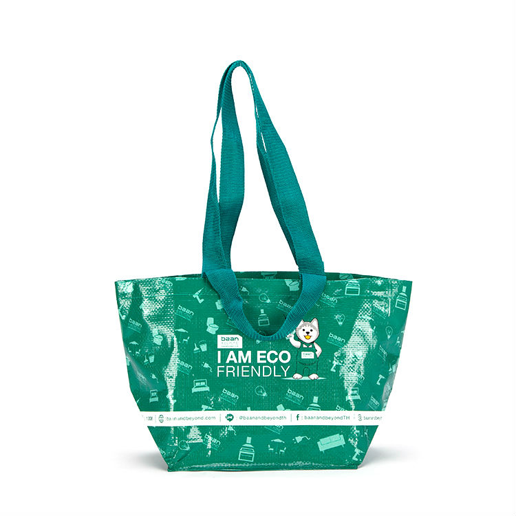 It has a rectangular compartment with side gusset structure and is adorned with cartoonish artwork on the exterior. This woven PP tote bag has two long handles for convenient carrying and is great for shopping, gifting and promotional use.