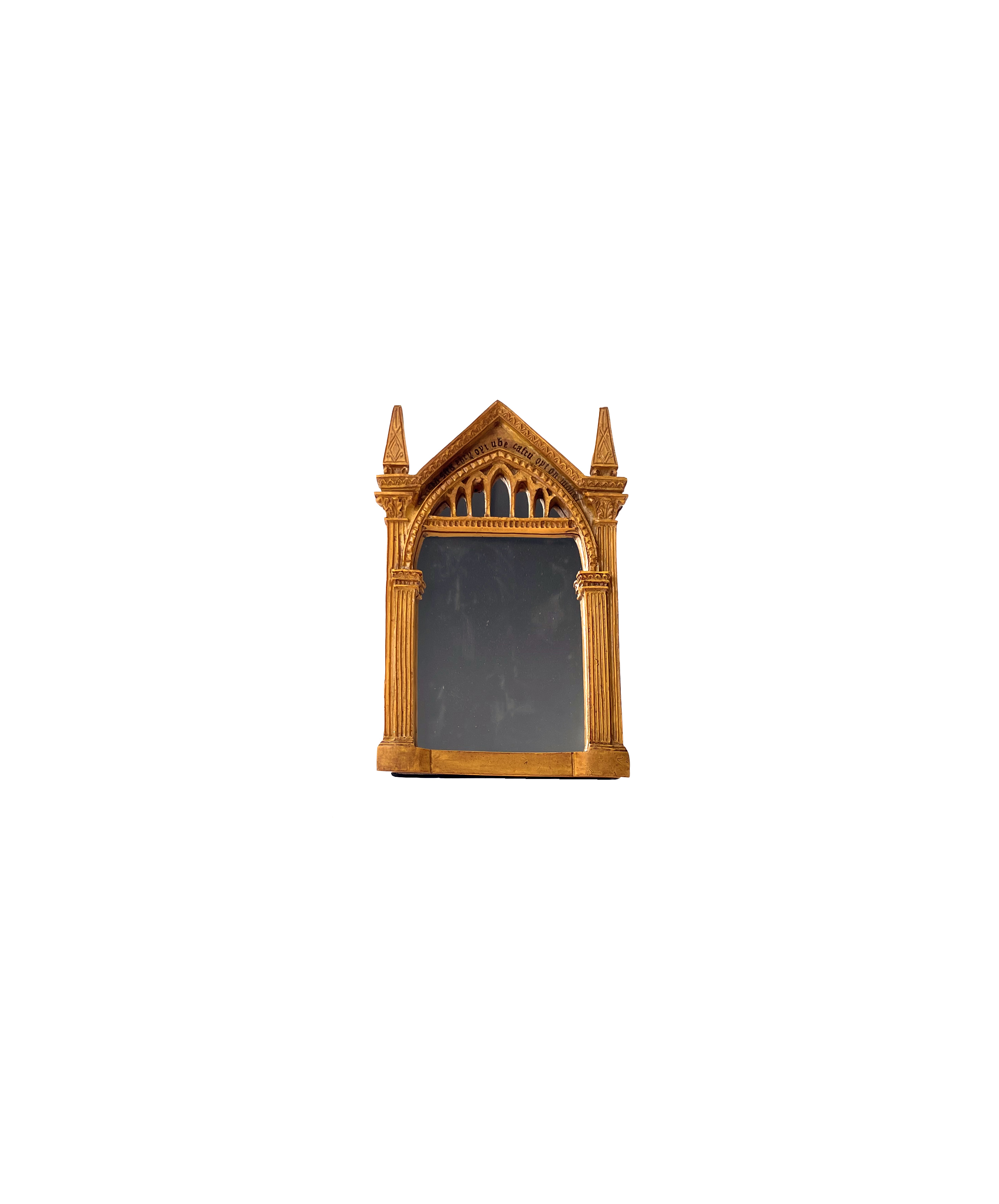 This is a replica of the Mirror of Erised from the classic film series, Harry Potter. It perfectly captures the gothic architectural style of the original mirror. In the books and movies, the mirror does not show truth, but rather the viewer's deepest desires and wishes. Dumbledore warned that it is extremely dangerous as it can lead to addiction to the illusion of satisfaction.