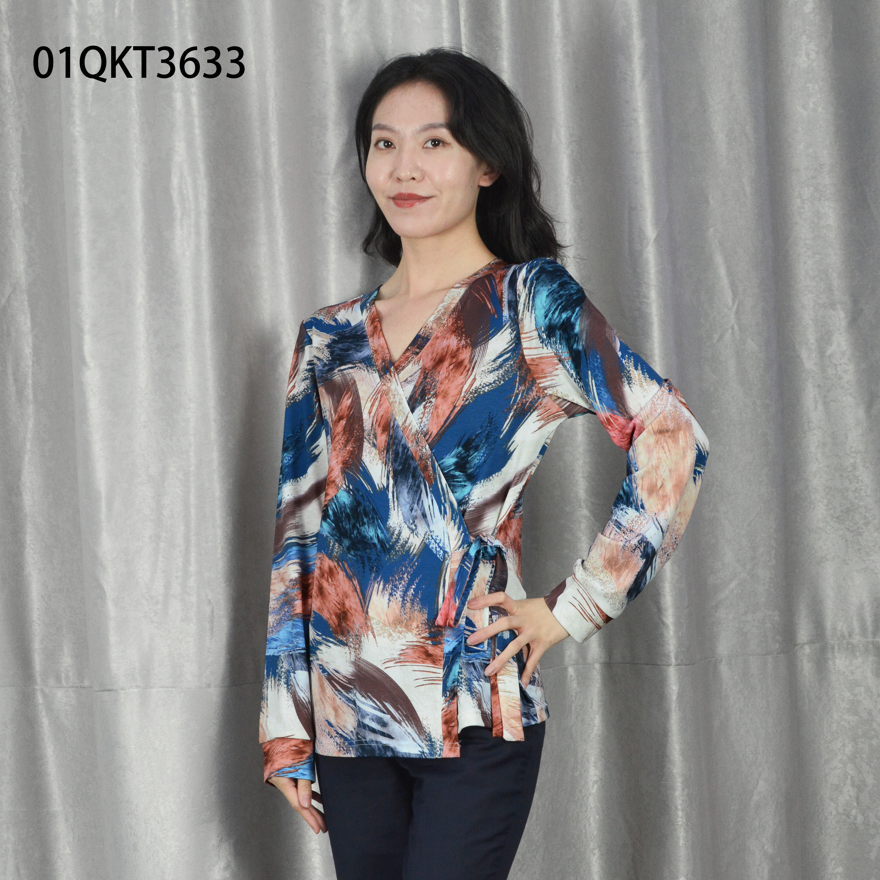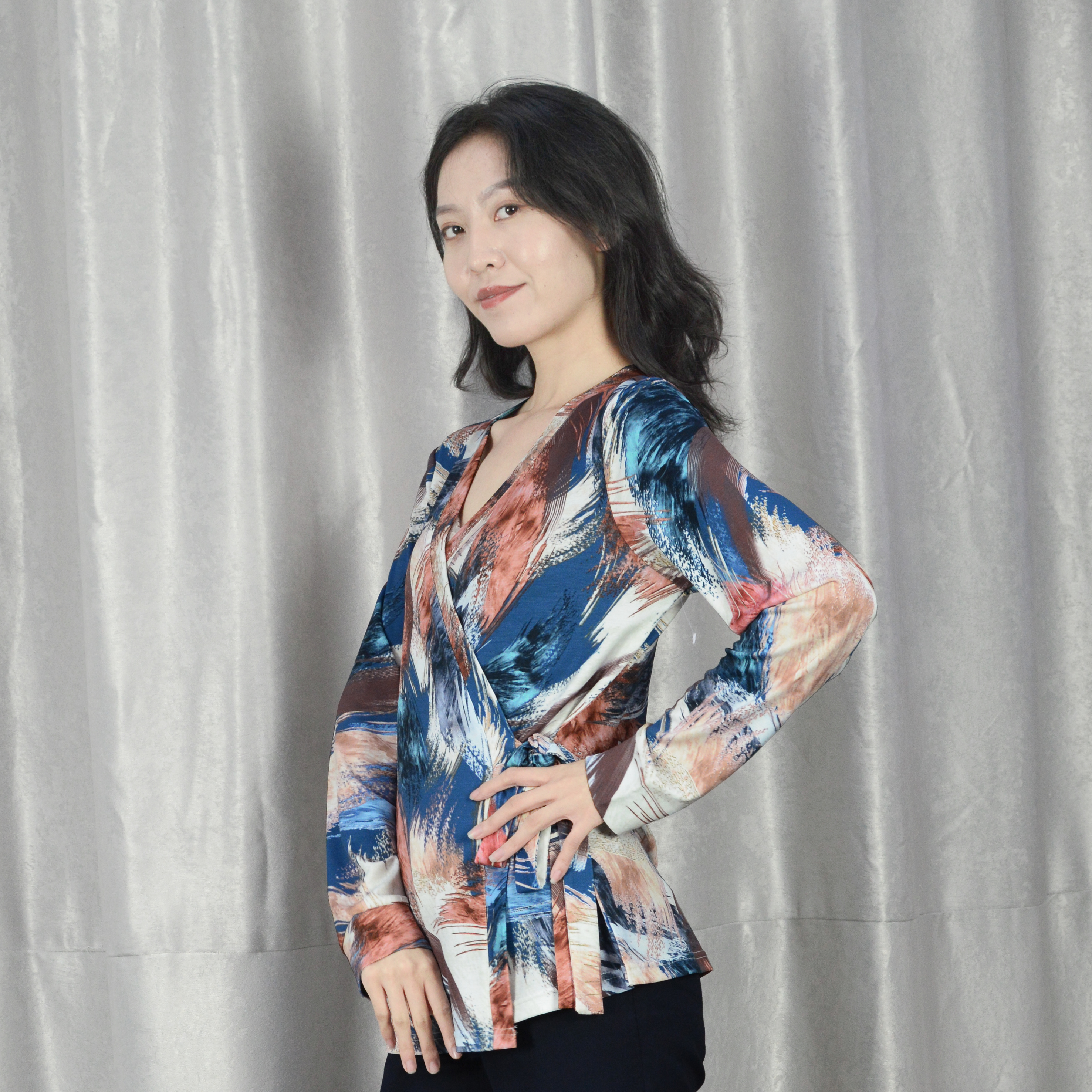 Custom New Style V-Neck Woman Casual Printed Blouse