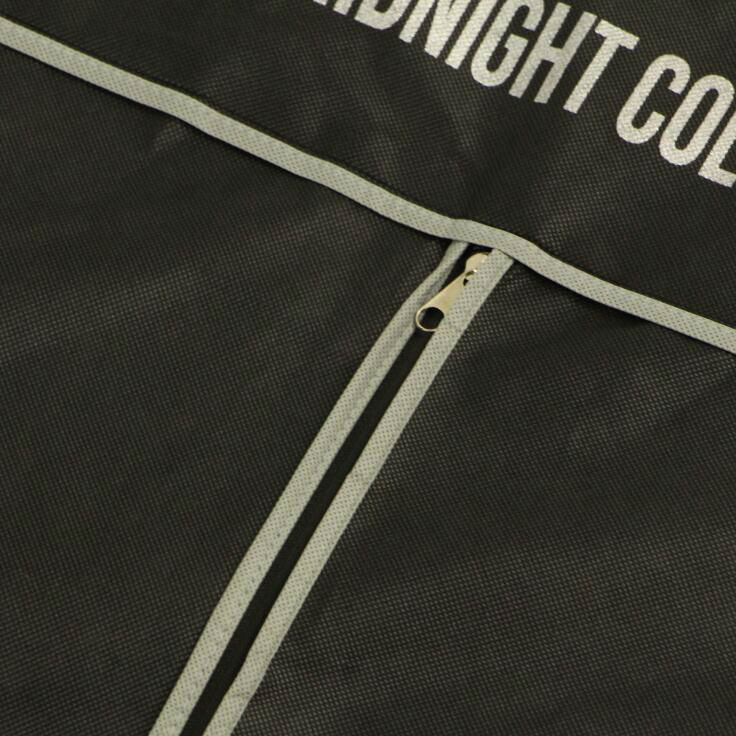 Cover your favorite coat in this garment storage bag with cartoon prints allover. The bag comes with a curved top cut with a little hole, fitting the silhouette of a hanger and letting its hook to thread through. Crafted with a concealed zipper down in the middle, this bag allows users to quickly tuck in a longline coat without hassle.