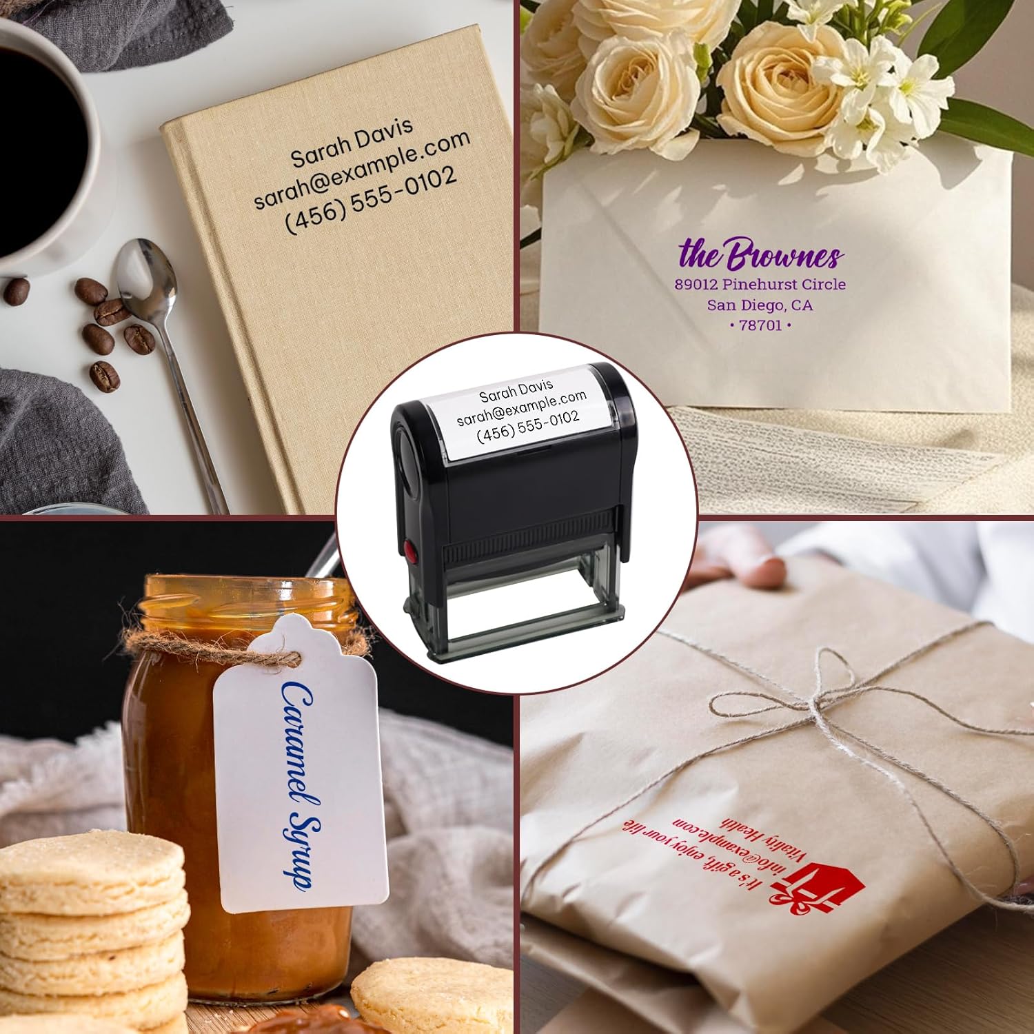 Our Premium Personalized Business Stamps are made from high-quality rubber, providing a clean and crisp impression every time. The premium ink is designed for excellent and consistent results, making it easy to stamp documents quickly and repeatedly without smudging. These stamps are not only practical but also an excellent way to quickly brand bulk mail, letters, or invoices with your company's information.