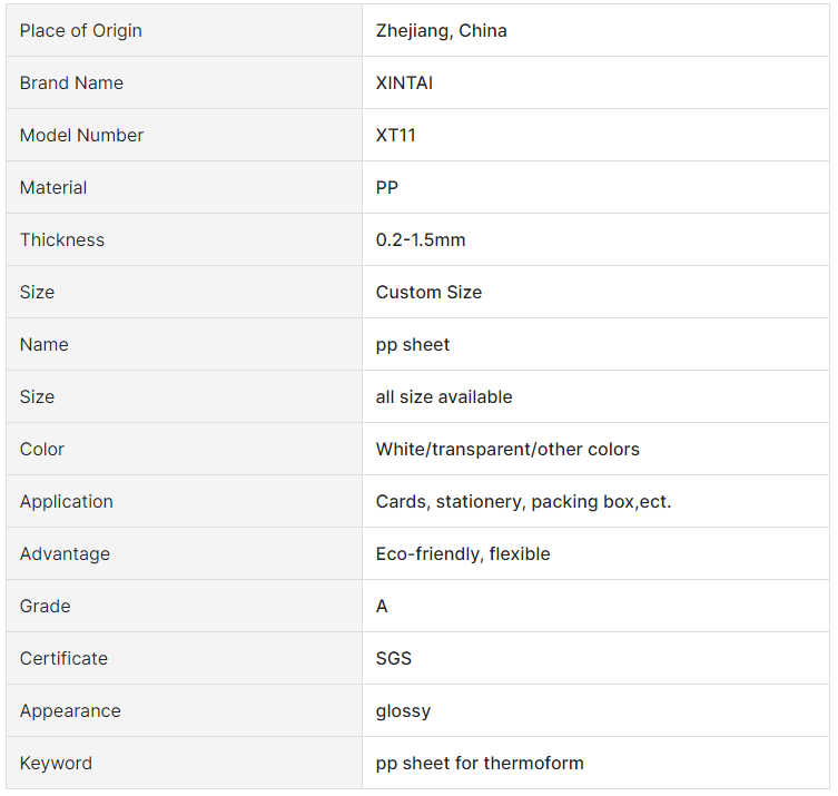 Custom Thick PP Thermoforming Sheet Roll Thermoplastic Polypropylene Plastic Sheet for Blister Packaging