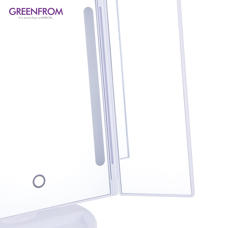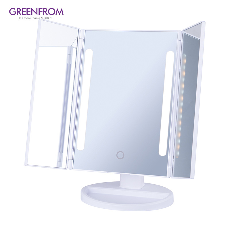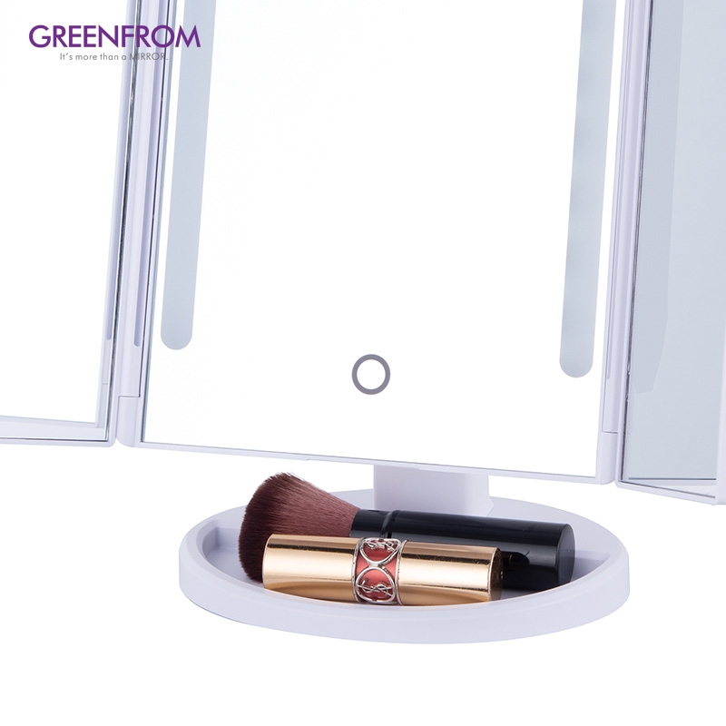 Custom Tri-Fold Three Way Desktop Standing Portable Folding Magnifying Tri Fold Table Led Makeup Mirror