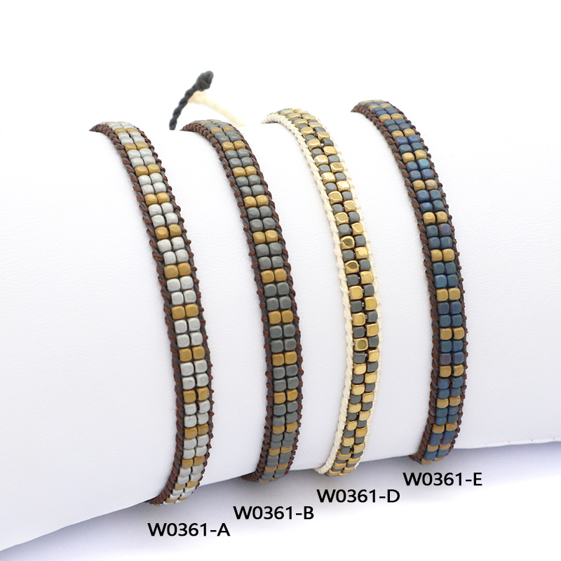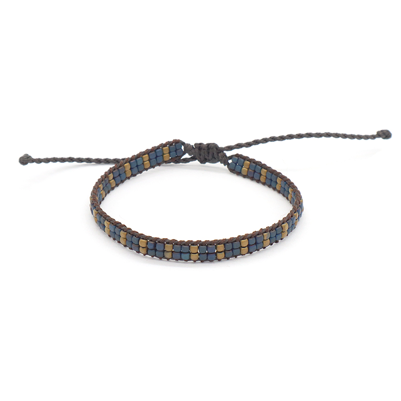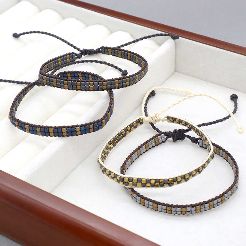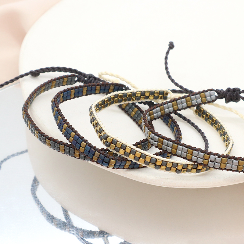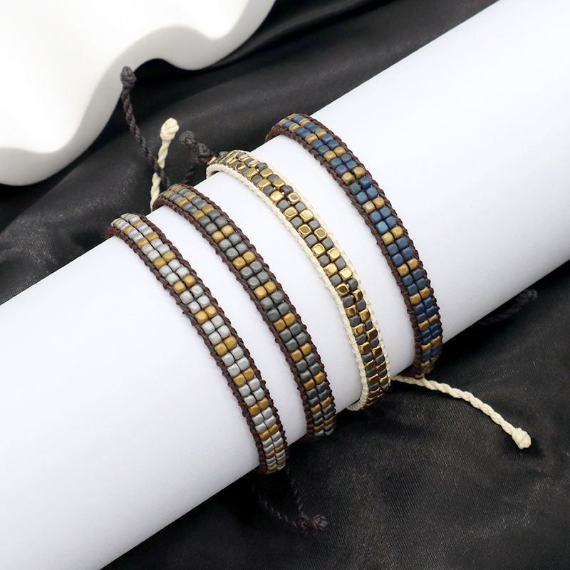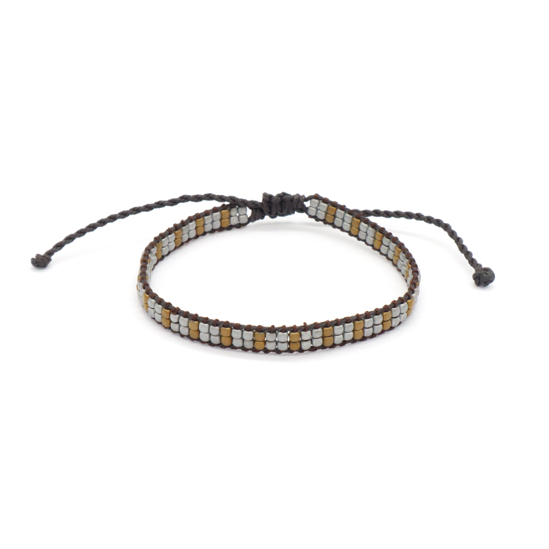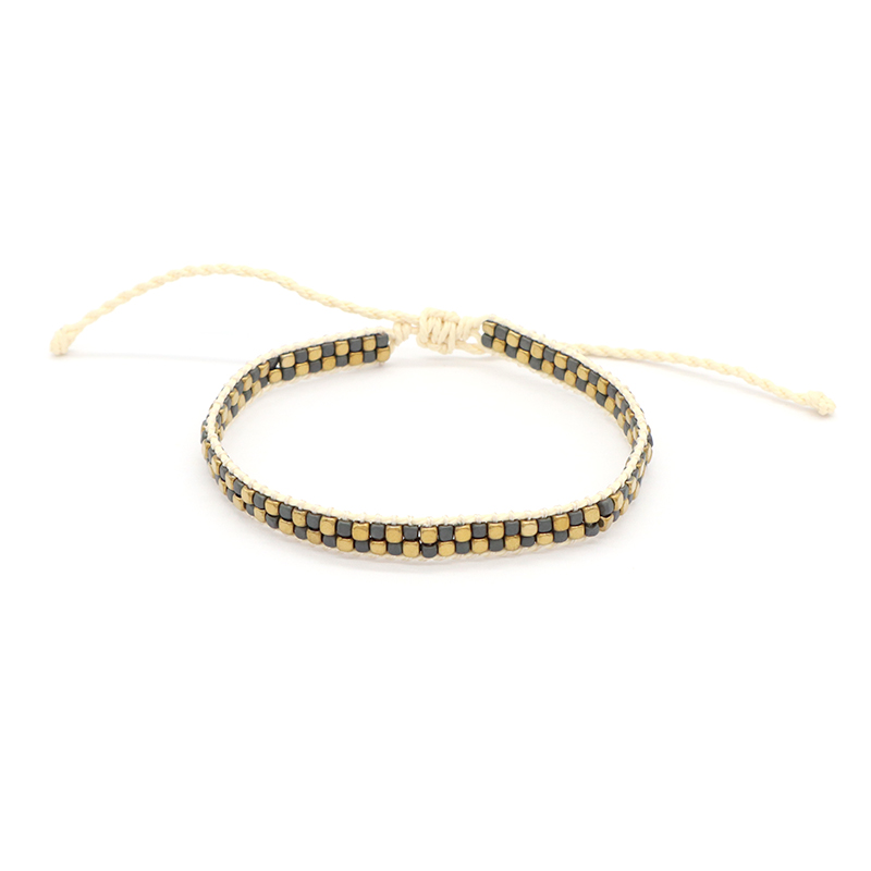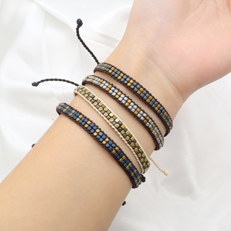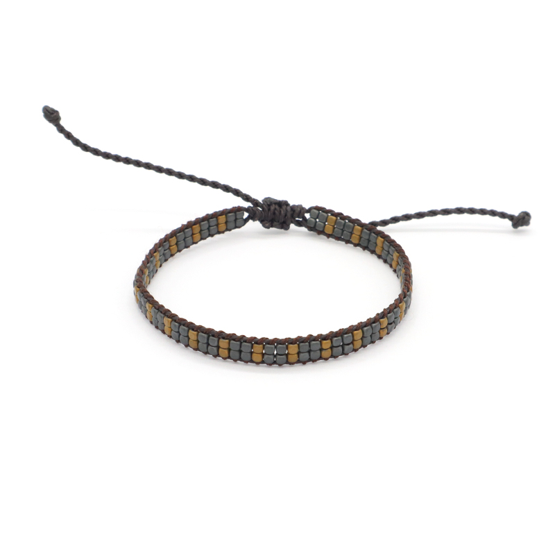 Custom Woven OEM Handmade Adjustable Double Rows Hematite Beads Bangle Bracelet