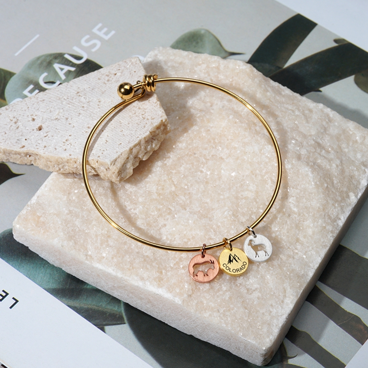 ❤PERFECT SIZE & ADJUSTABLE - The bangle measures 6.7cm/2.63inch in diameter. This bracelet can is expandable, you can easily adjust the bracelet to fit in your wrist. Squeeze the 2 ends and wear it on your wrist. Each disc charm measures 1cm/0.39inch.
