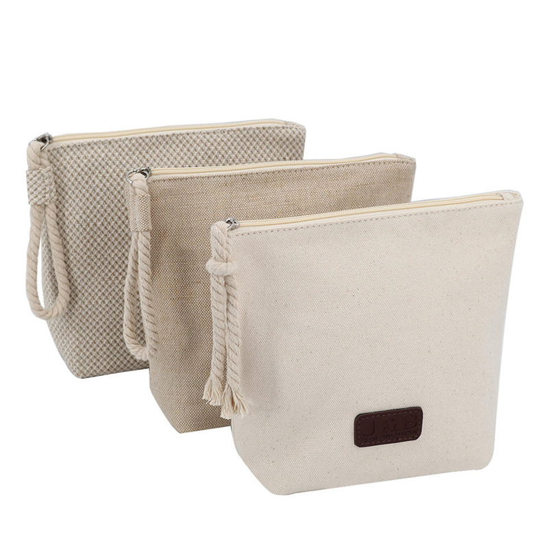Custom-made canvas braided chain buttons, foldable hand-held cosmetic bag, waterproof cotton fabric, digital printing, student storage pen bag