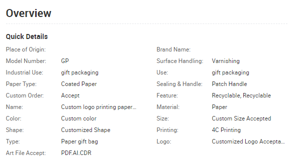 White/brown Kraft paper: 150gsm and so on