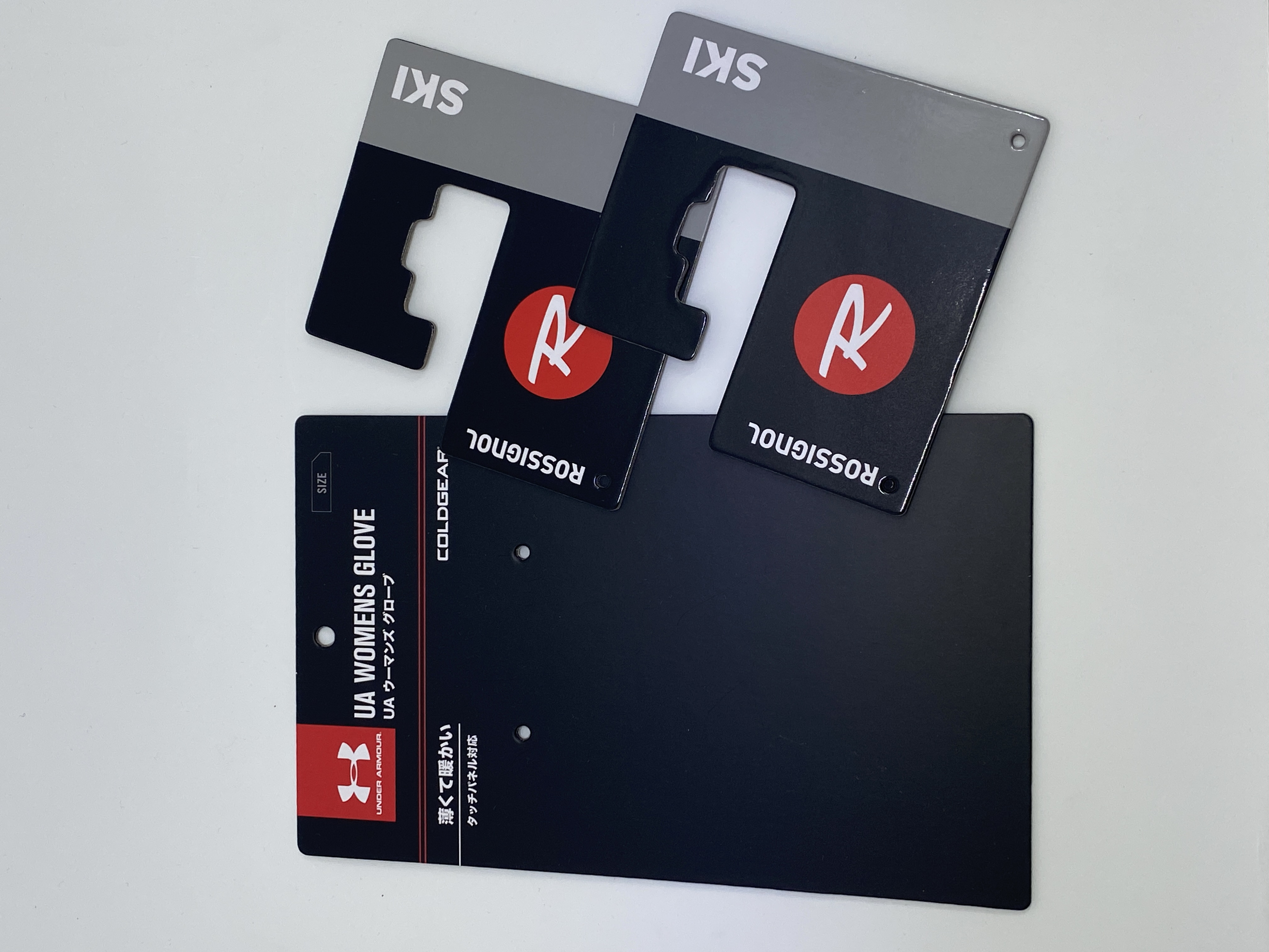 This hanging header is the packaging solution for your newly launched gloves. Rendered in a top-quality paper, this hanging header features a streamlined cut-out design so your retailers can hook it onto racks and shelves effortlessly. It is also designed with two little holes at the bottom so you can attach the gloves onto them with ease. Grab this user-friendly hanging header now to hold your new gloves collection for this season.