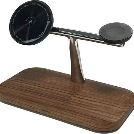 Customize Wood Base Charging Station 3-in-1 15W Magnetic Phone Holder 3 In 1 Wireless Charger For Earphones Watch