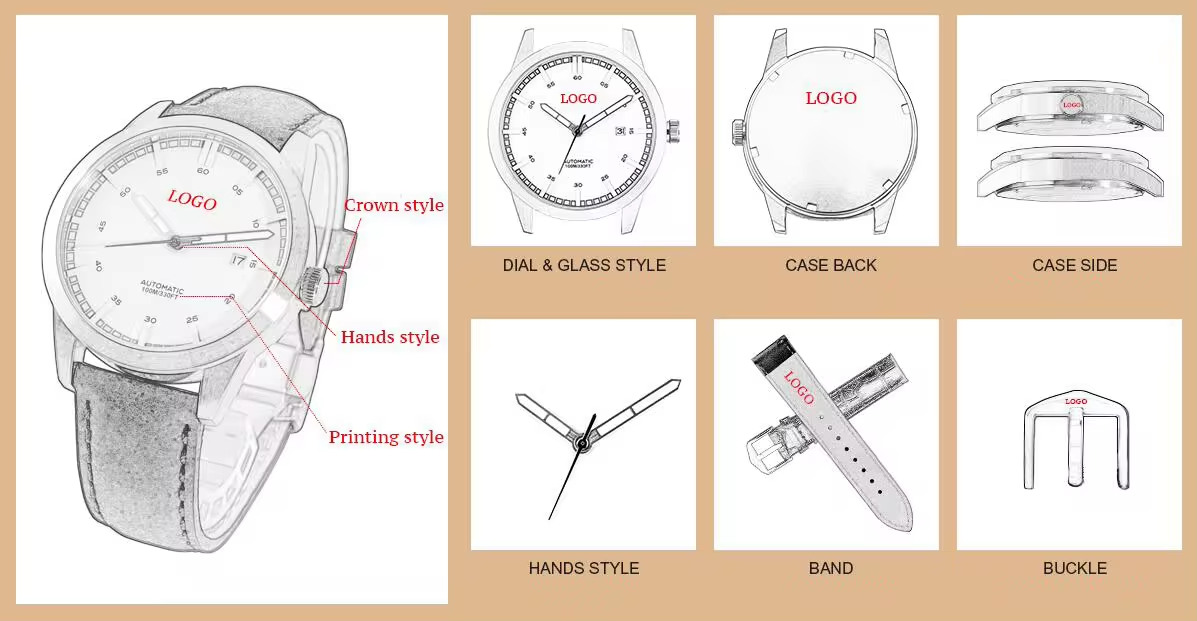 Customized Automatic Movement 316L Stainless Steel Watch Date Display With Sapphire Glass Bubble Magnifier Waterproof Logo Watch