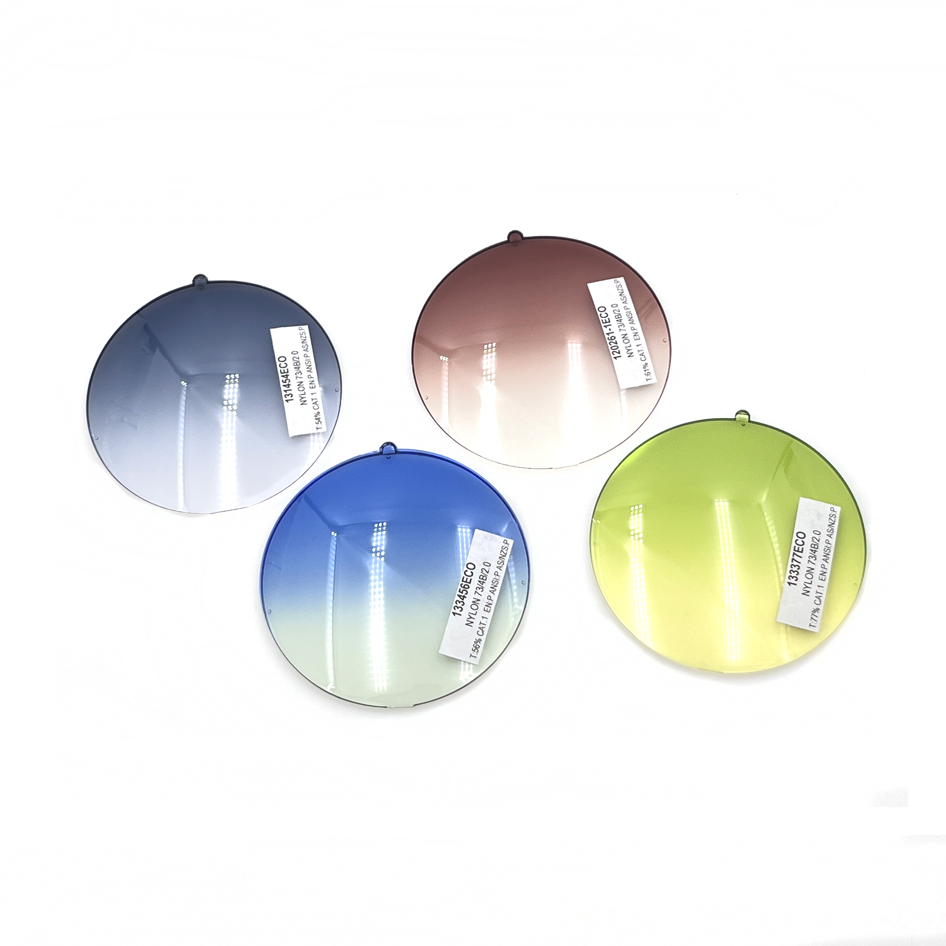 Uniquely tailored ECO Multi-Colored UV 400 Tinted Sun Lens Fashion Nylon Gradient Sunglasses Lenses offer a stylish and protective eyewear solution, featuring a gradient color scheme that seamlessly blends into the design, providing both comfort and a fashionable flair.