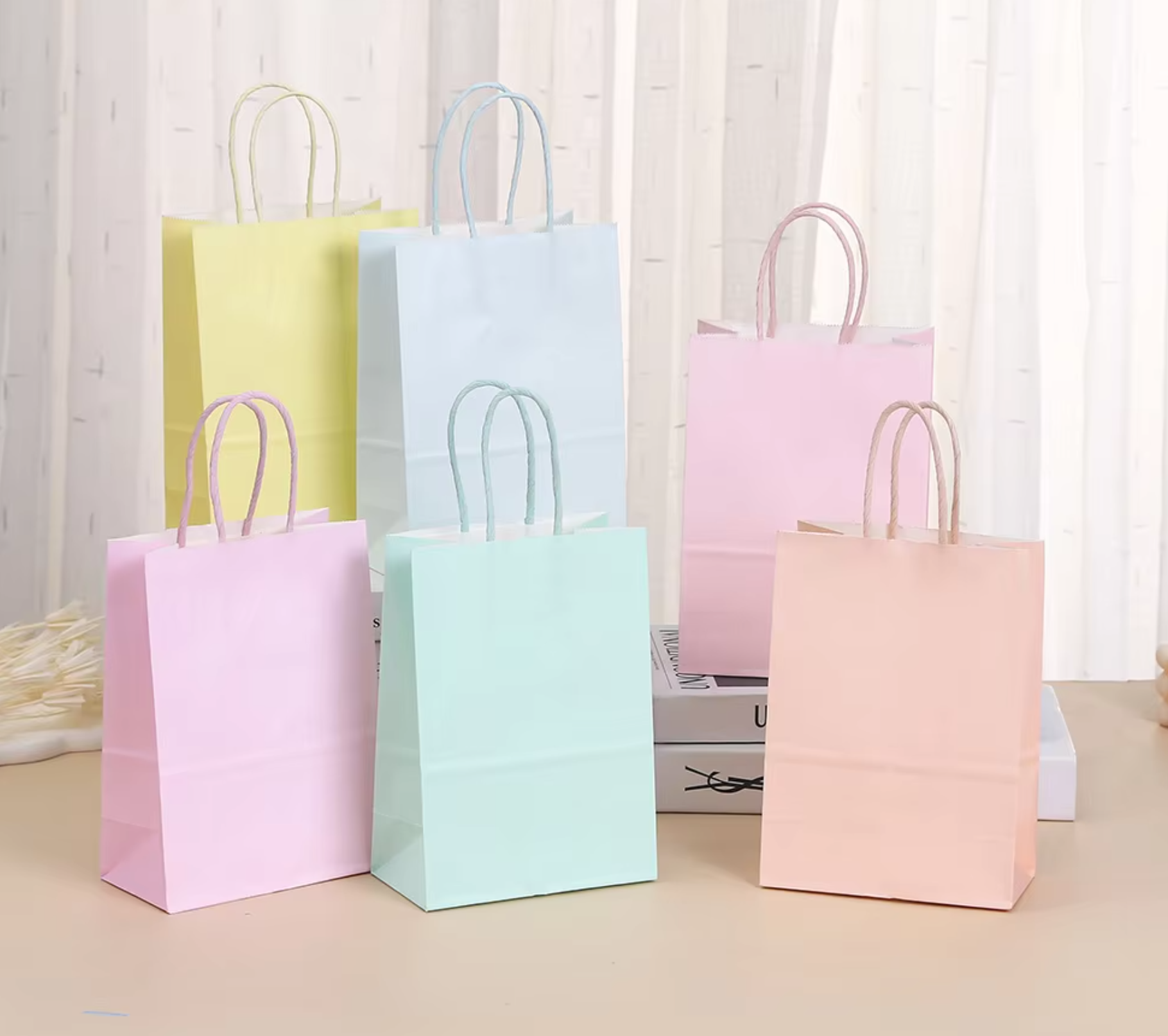 Customized Macaron Color Kraft Paper Tote Bag Simple Design for Holiday Gifts for Supermarket Flat Candy Promotions