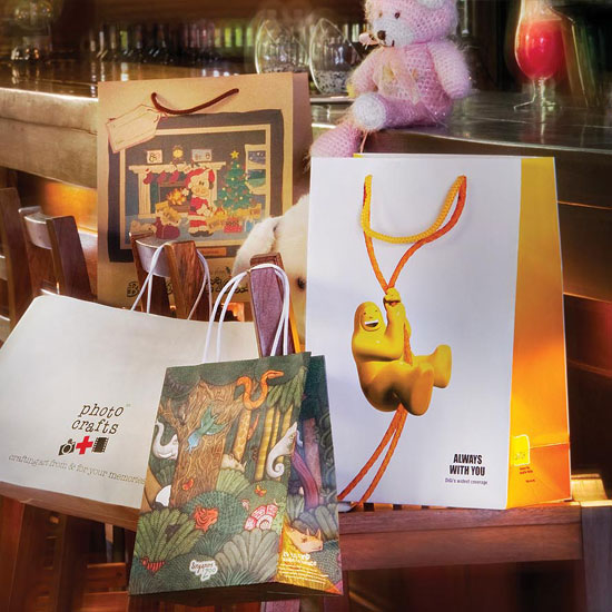 The customized paper bag exhibits precise imagery and colors. The collapsible construction allows easy storage and reuse. The lightweight bag is also comfortable to carry.