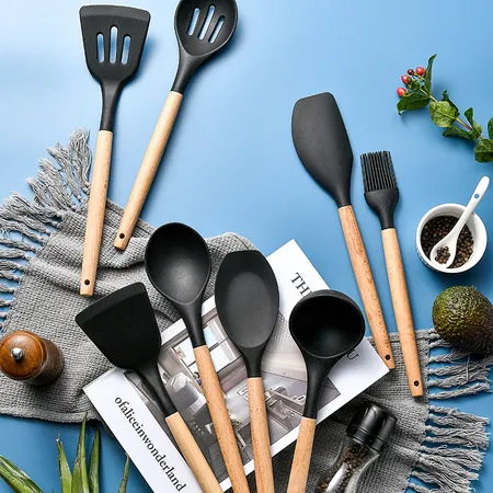 Silicone Kitchen Utensils,color is customized,packing is polybag,tie card or giftbox,OEM and ODM is acceptable.