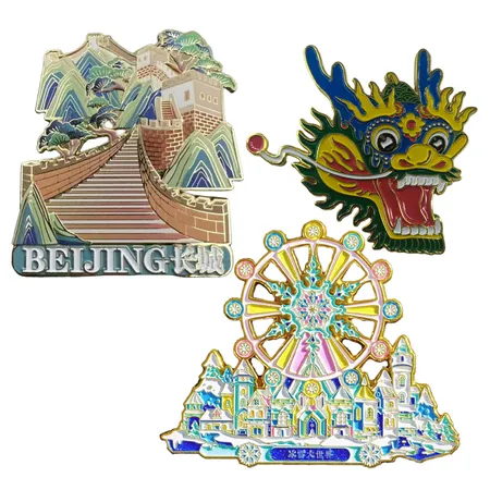 Customized combination of metal refrigerator stickers and cultural and creative cartoon character ornaments DIY Flowing Sand City Scenic Area 3D customization