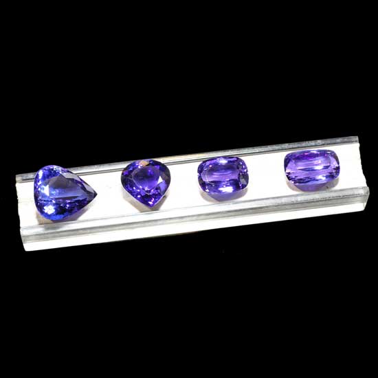 Highlighted is a selection of premium tanzanites in purple. The gems come in various cuts with precision facets. The enticing sparkles brighten any designs of jewelry.