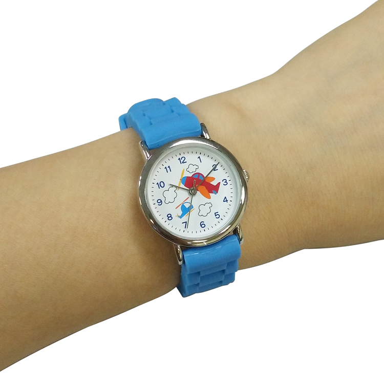 Cute Cartoon Pattern Wrist Watch For Kids With Blue Silicone Strap