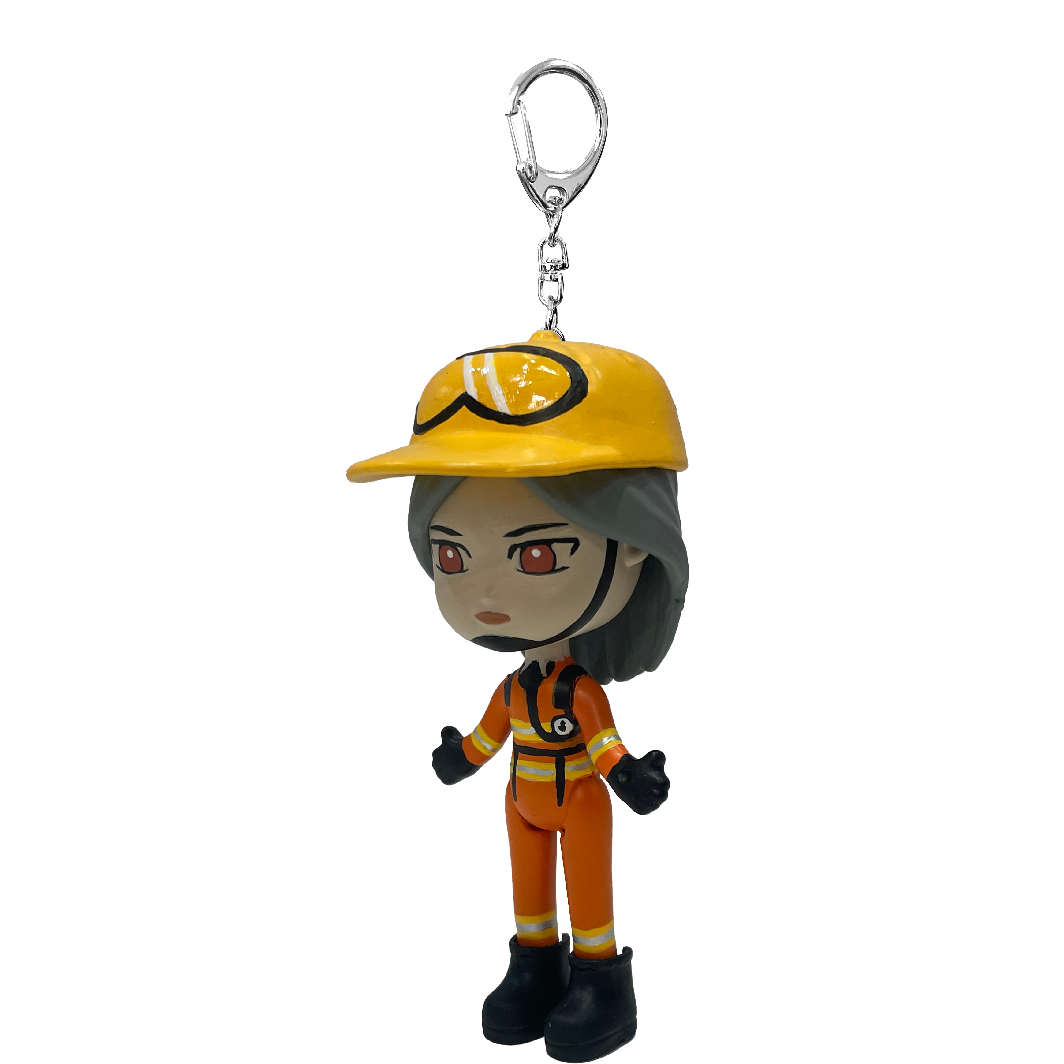 Cute Firefighter Doll Keychain, Cartoon PVC Figure with Metal Charm Clip, Backpack Decor Gift for Kids Bulk
