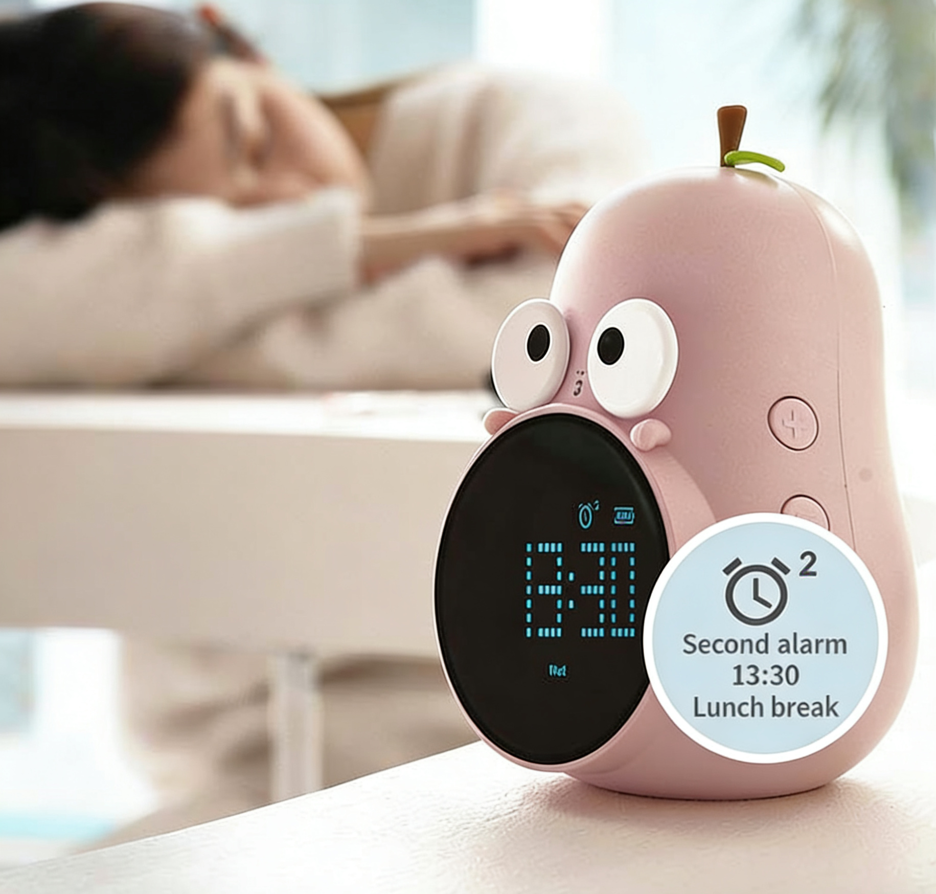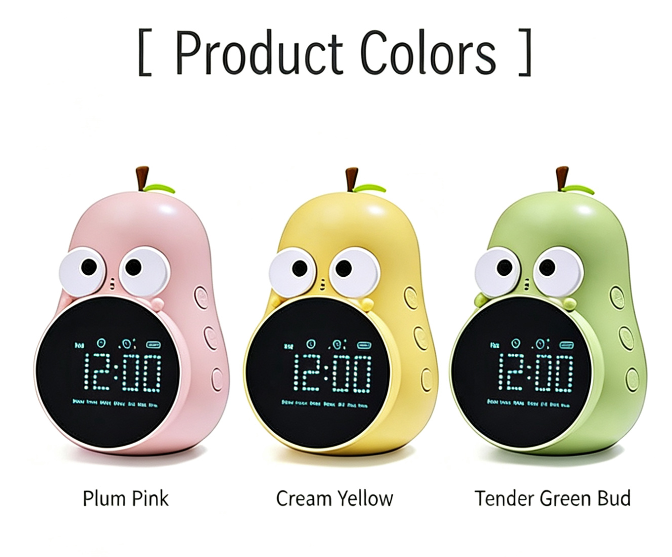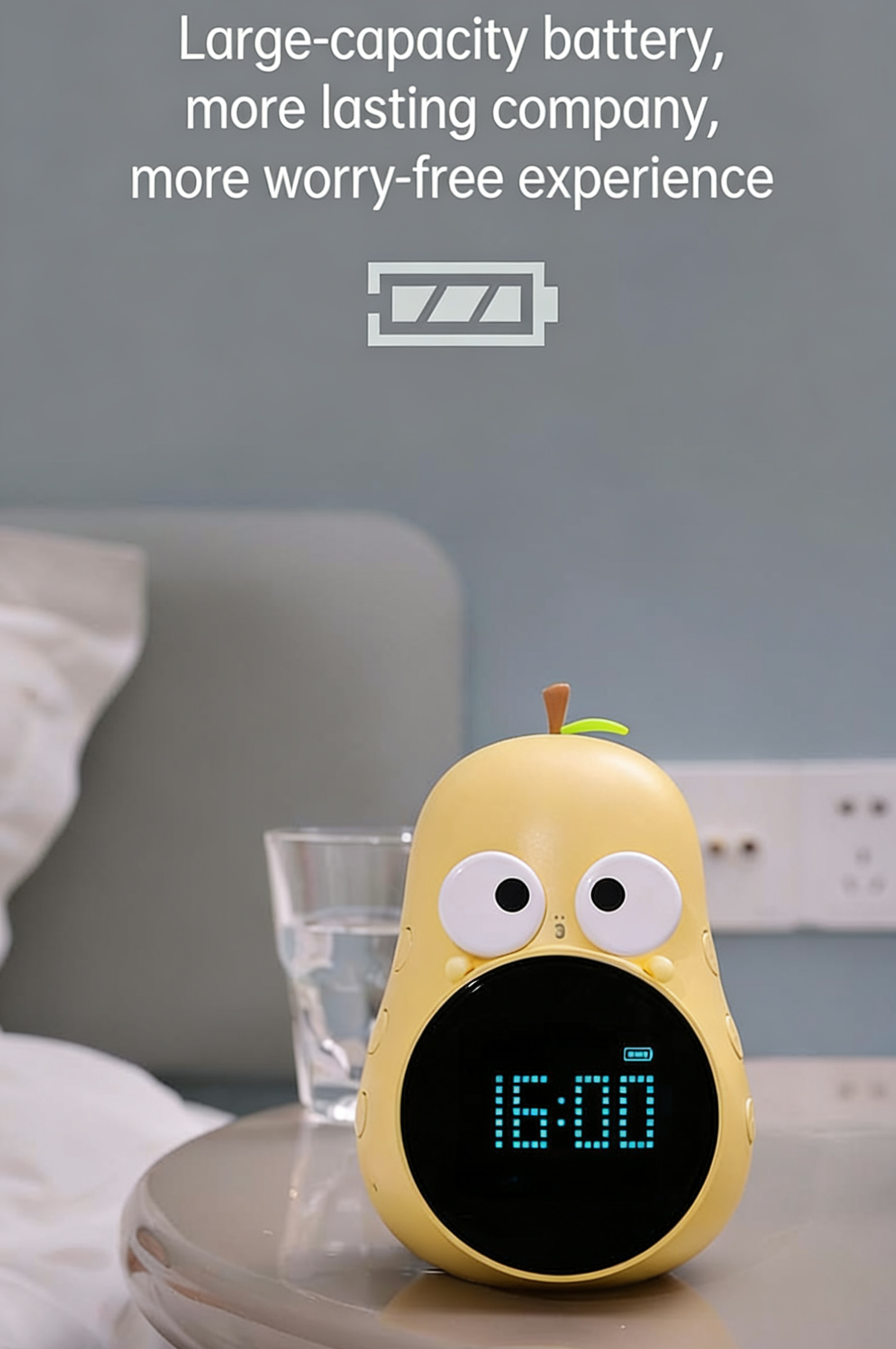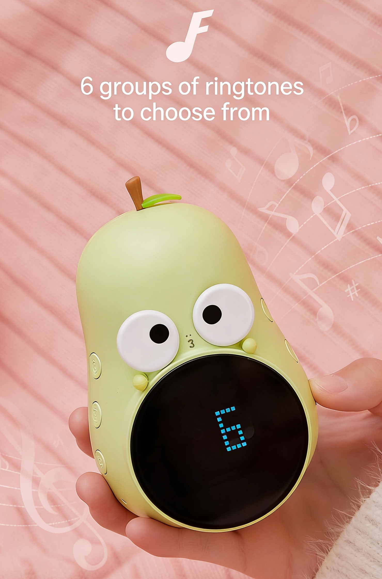 Cute Pear-Shaped Smart Alarm Clock with LED Display, Voice Control & Countdown, Rechargeable Bedside Clock for Kids Bedroom, Gift