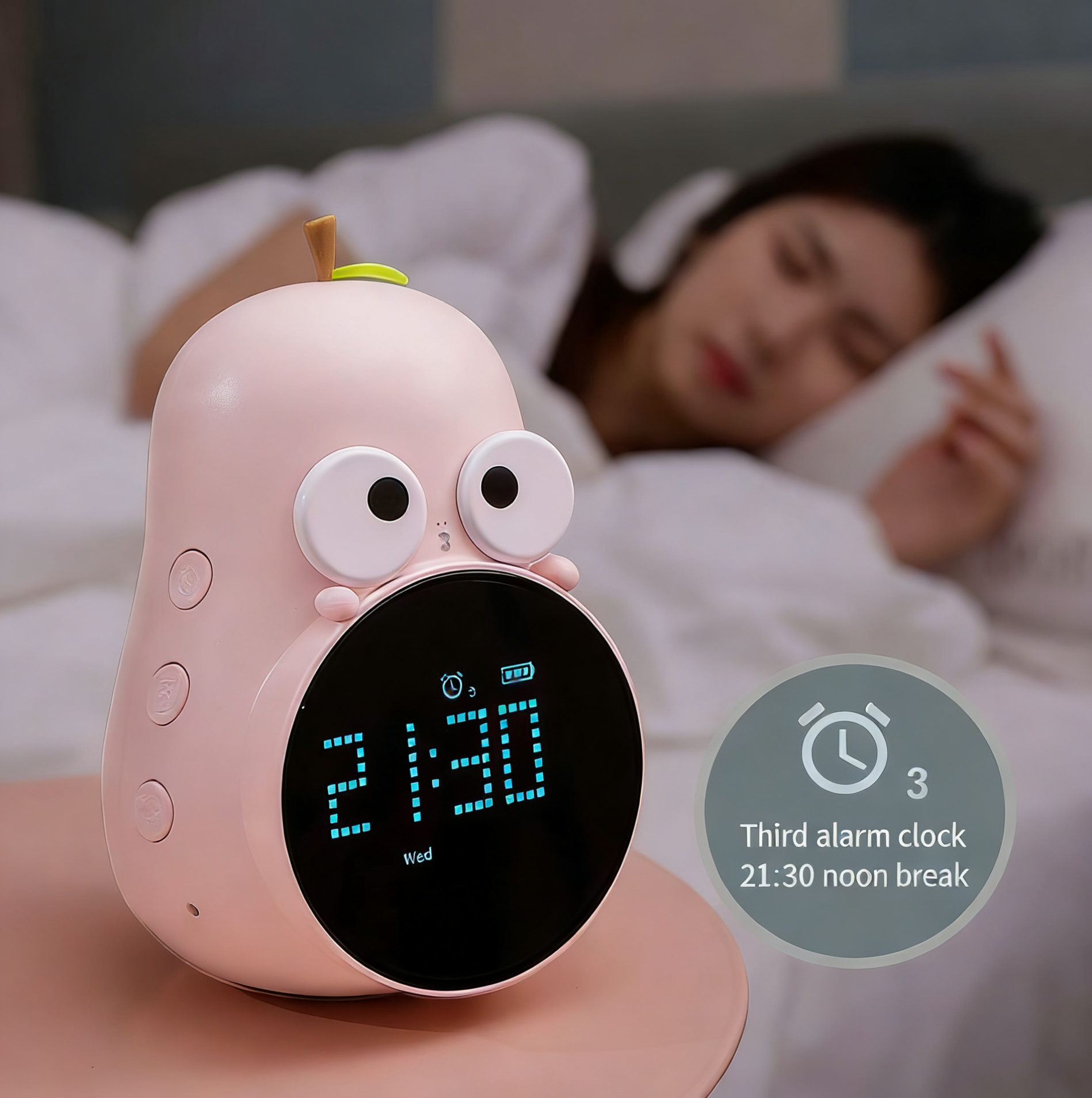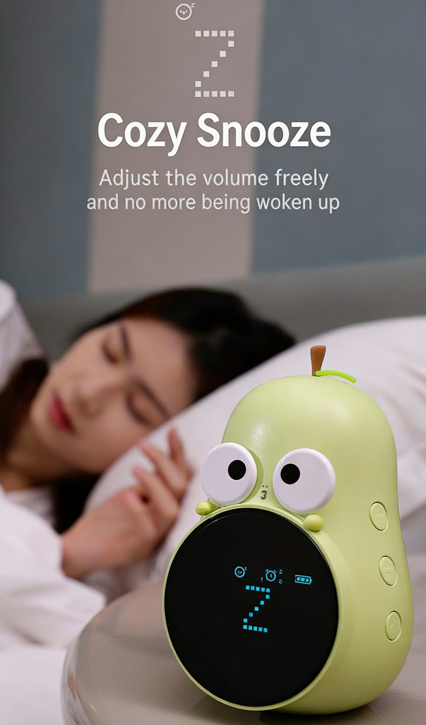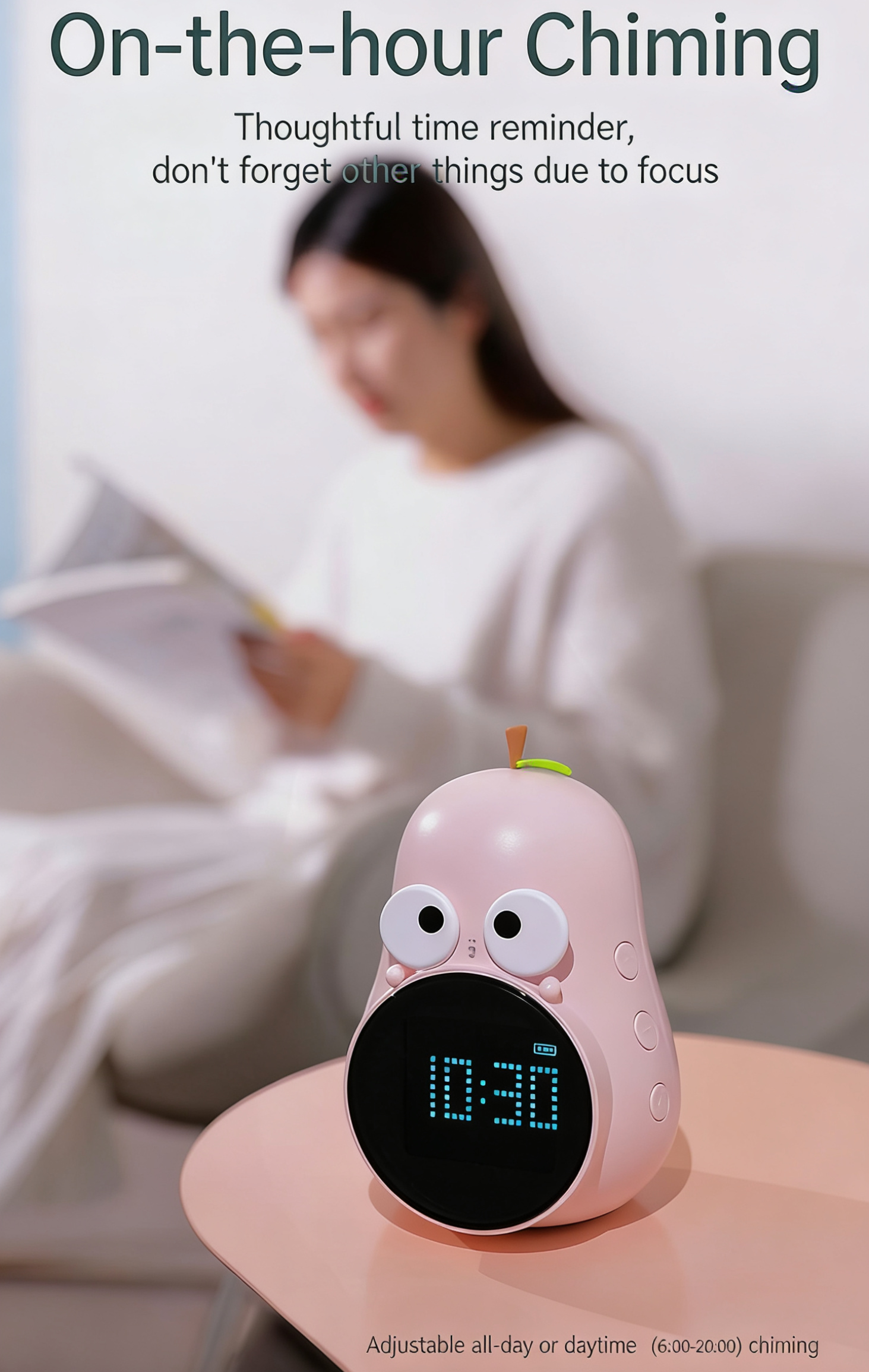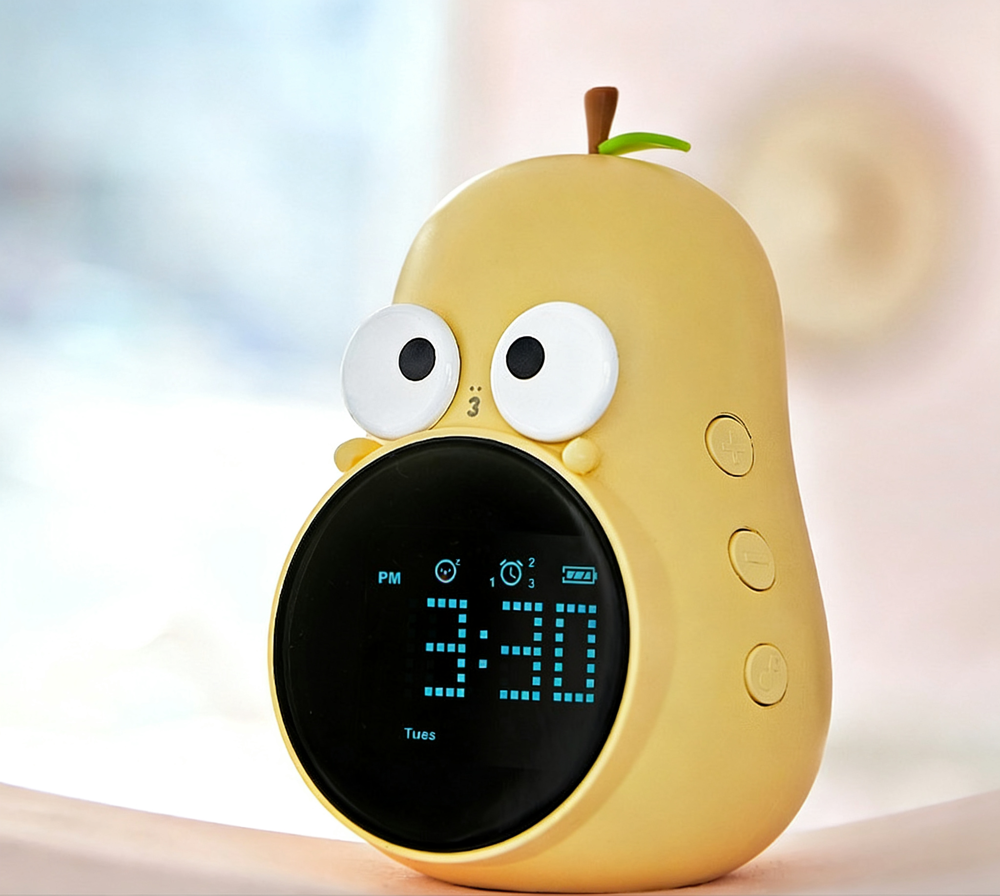 Cute Pear-Shaped Smart Alarm Clock with LED Display, Voice Control & Countdown, Rechargeable Bedside Clock for Kids Bedroom, Gift
