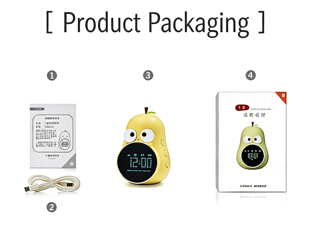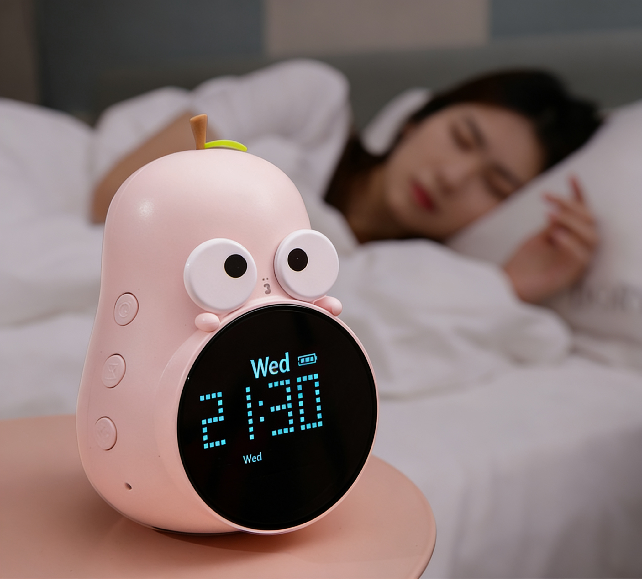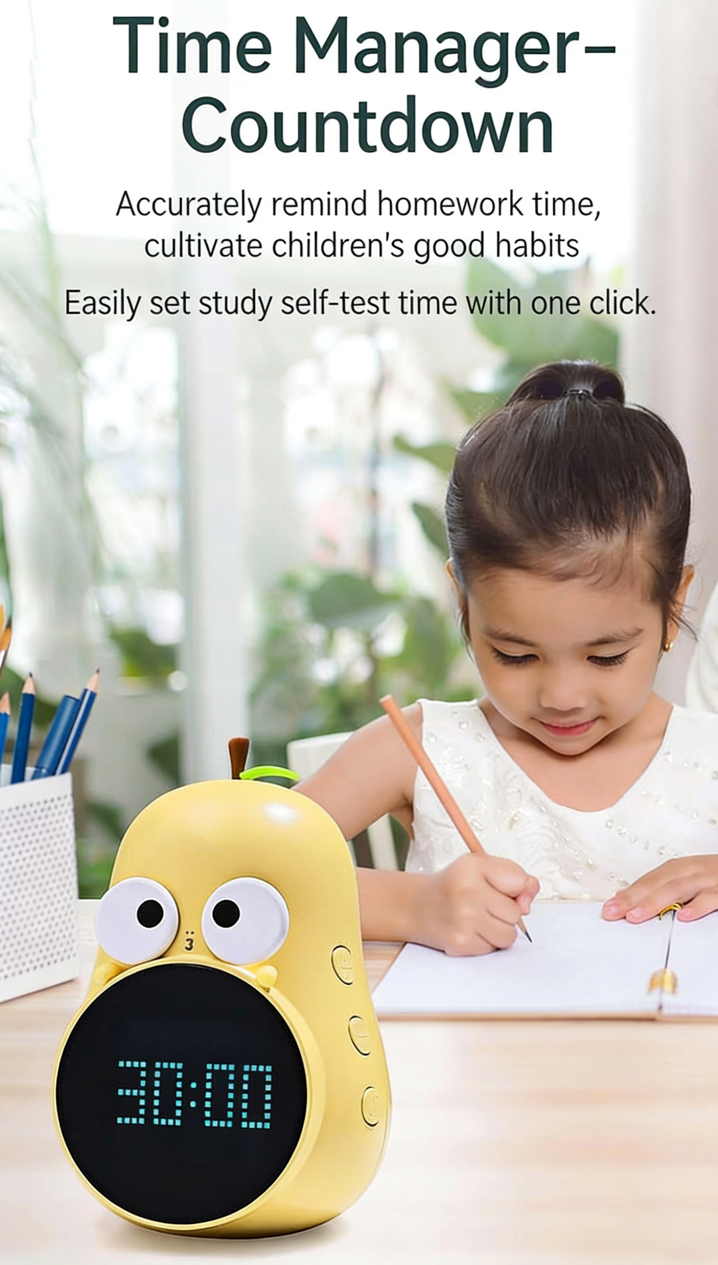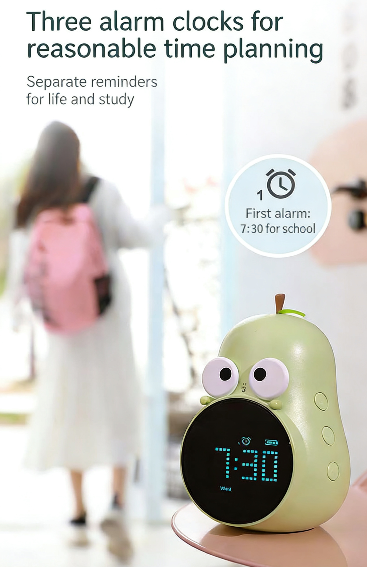 Cute Pear-Shaped Smart Alarm Clock with LED Display, Voice Control & Countdown, Rechargeable Bedside Clock for Kids Bedroom, Gift