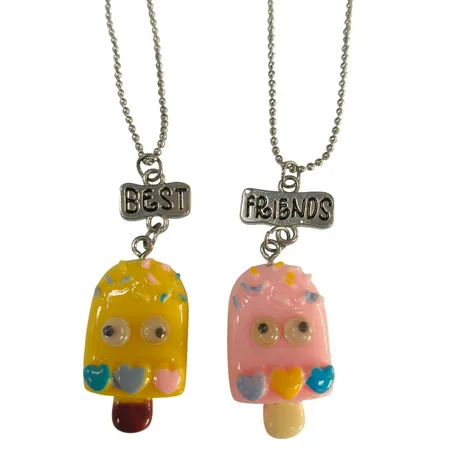 These necklaces are designed to celebrate friendship. The combination of the words "BEST" and "FRIENDS" into "BEST FRIENDS" clearly conveys the theme of deep - seated friendship. The distinct yet complementary popsicle - shaped pendants, one yellow and one pink, signify that friends, while having different personalities, form a harmonious whole. Each necklace can be worn by a different friend, acting as a constant reminder of their special bond.