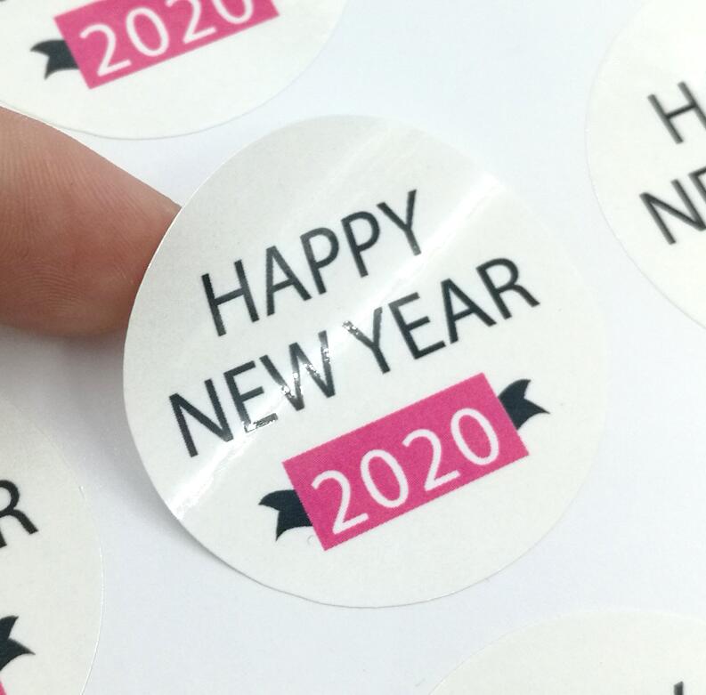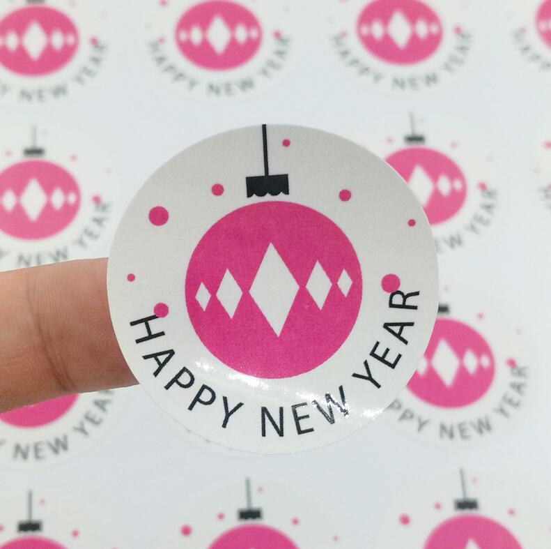 • Each Happy New Year label features a permanent adhesive that sticks to paper, plastic, cardboard, bags, fabric and glass.