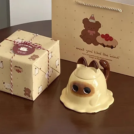 Siamese cat ceramic water cup, ceramic underglaze painted product, high-temperature resistant