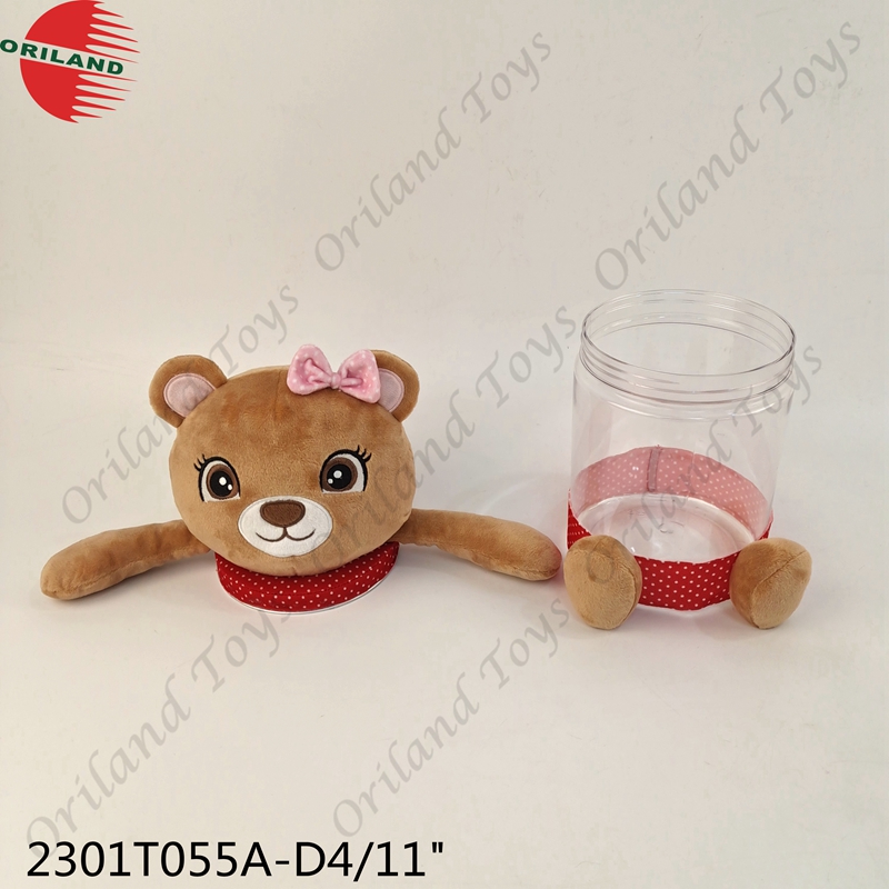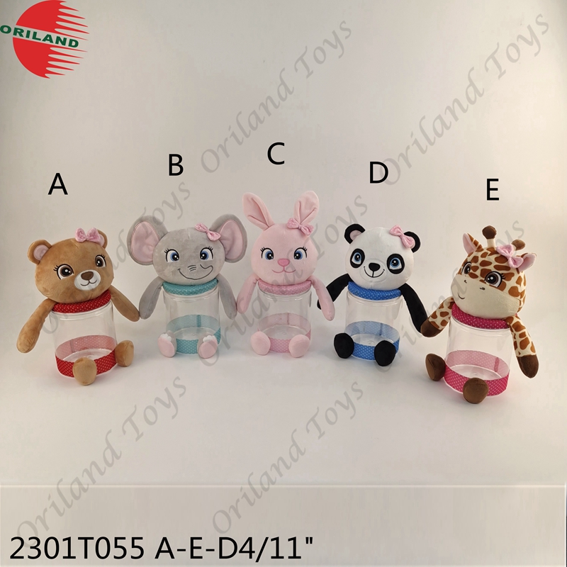 Cute cartoon plush animal head pet plastic candy jar candy box