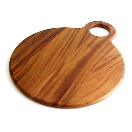 This presented cutting board is made of quality wood with a natural grain pattern. It has a handle hole that is designed for an easy grip. This cutting board is a durable piece to endure heavy-duty cooking work.