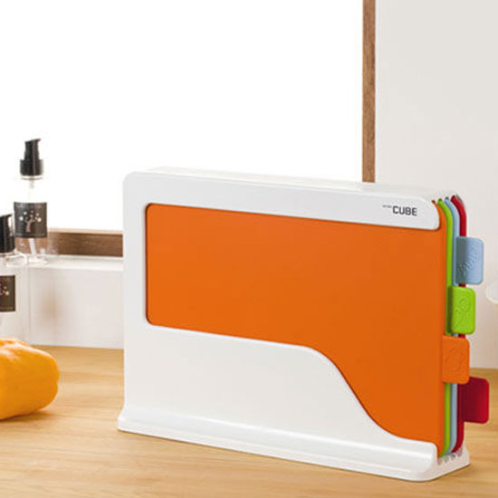 This is a cutting board series that comes in assorted bright colors. Made of polypropylene, a kind of nontoxic material widely used in medical appliances and baby goods, this cutting board is safe to use. This high quality cutting board can be stored in a vertical rack to save space.