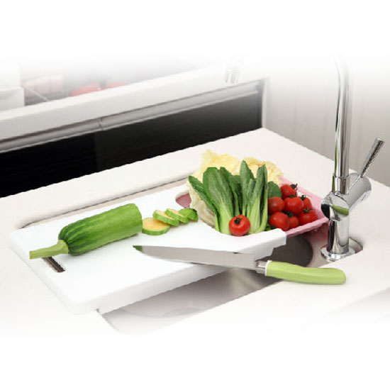 This is an expandable cutting board including a removable water drained tray. It is finely designed with an anti-bacteria function. The robust and rugged structure promises a long service life.