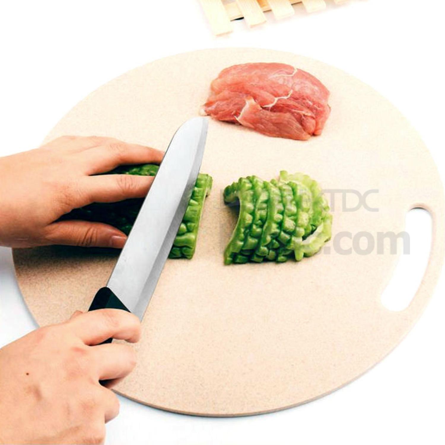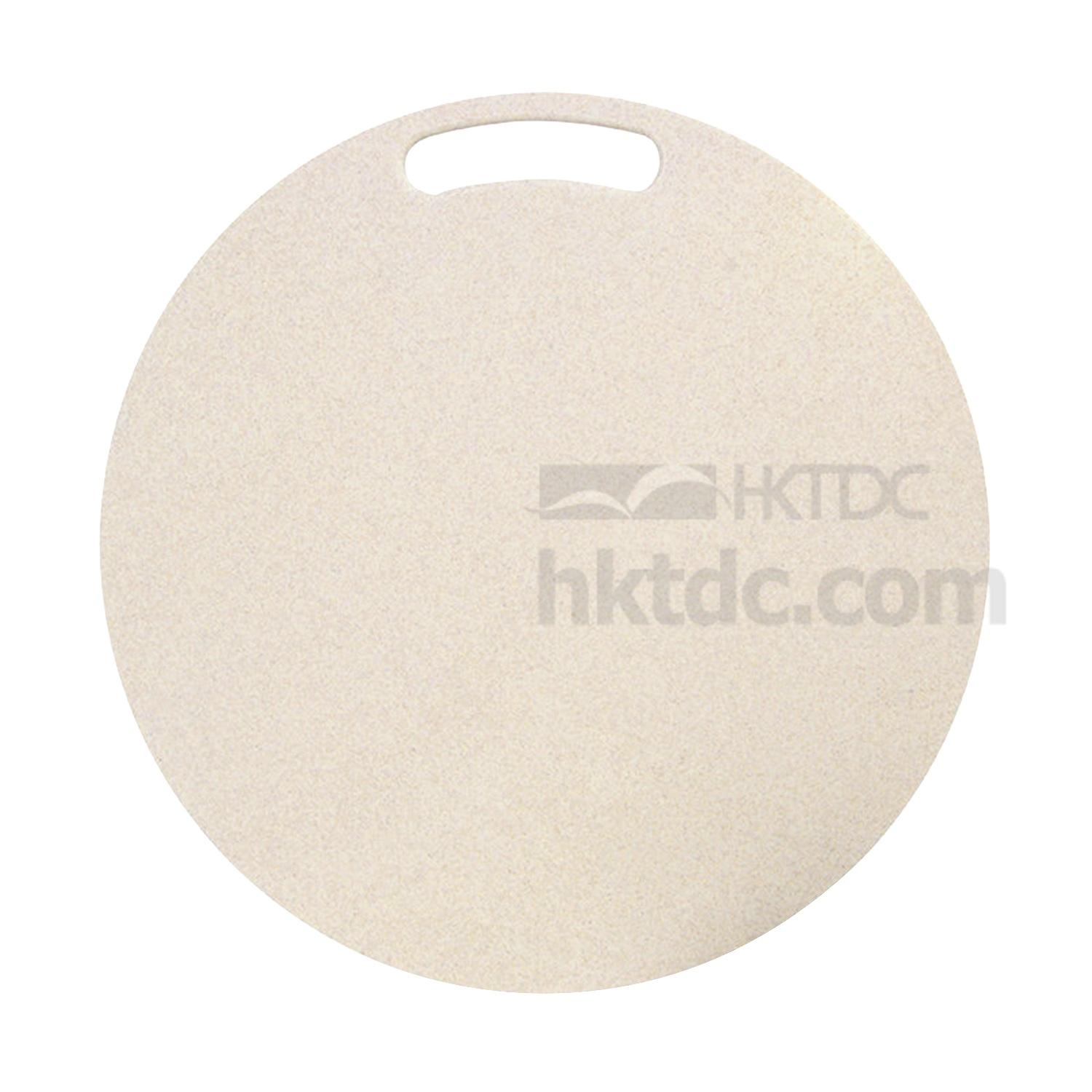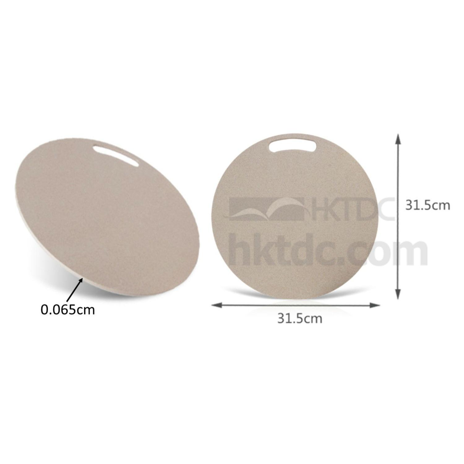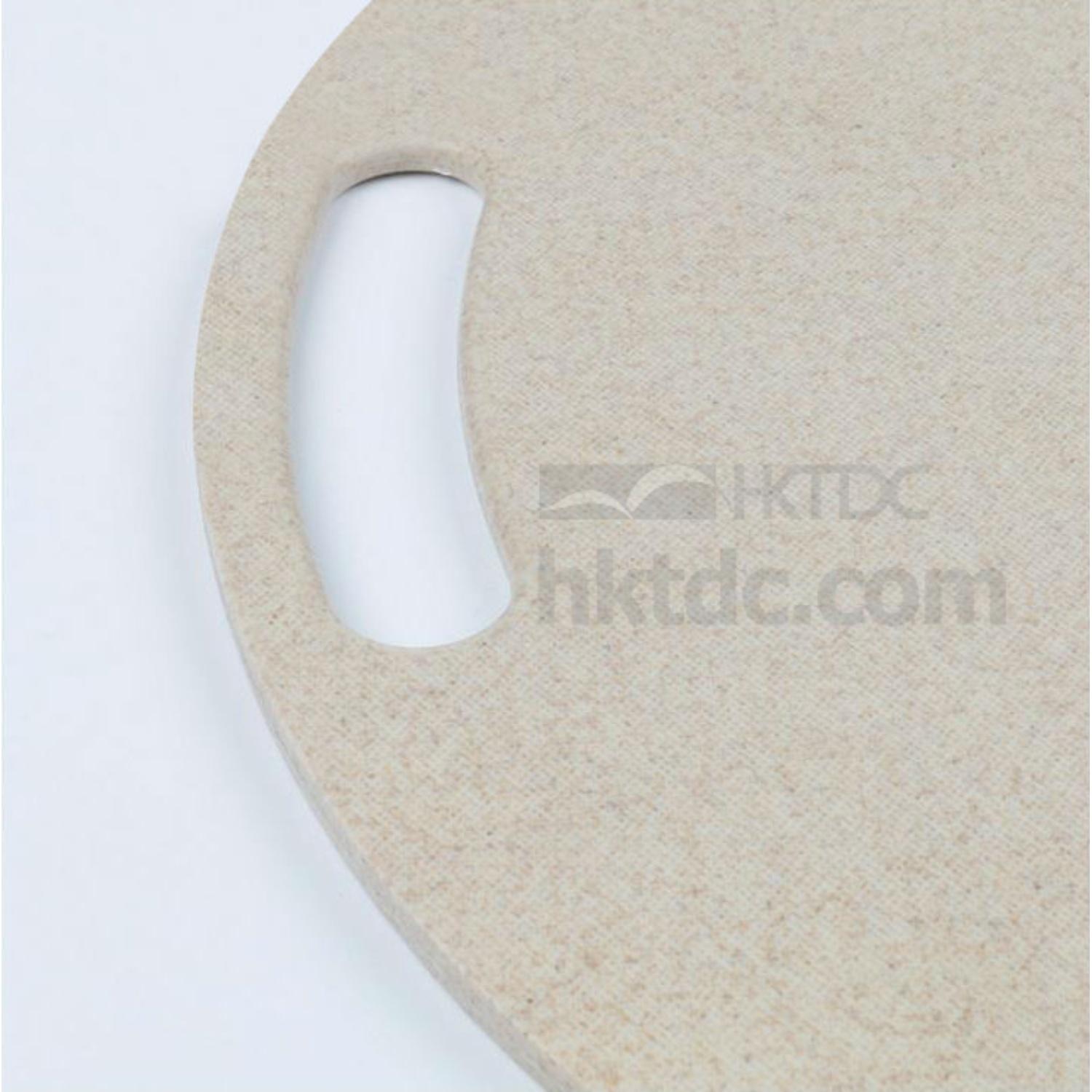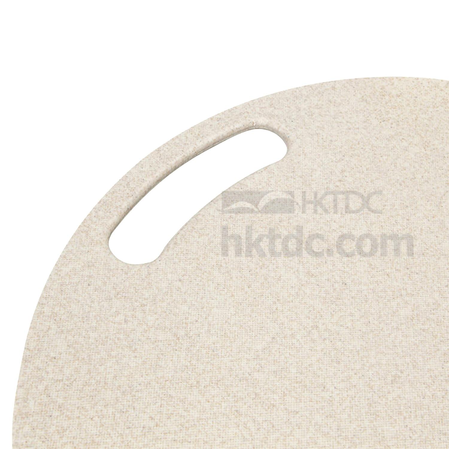 Slice and serve on this circular cutting board for a favorable touch of modern style to your tabletop. Made from wheat fiber reinforced plastic, it is an environmental friendly piece for assisting your meal preparation. The curved cut-off near the edge further prompts convenient holding during outings.