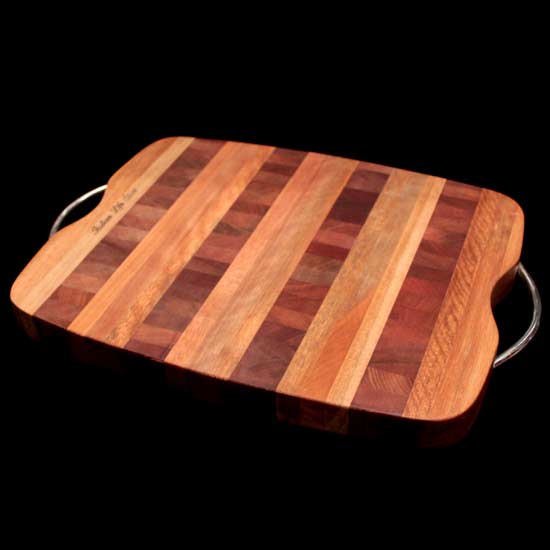 The cutting board comes with handles for easy carrying and hanging up. The fine wood construction ensures durable use over the years. This cutting board is an ideal kitchen utensil for every modern home.