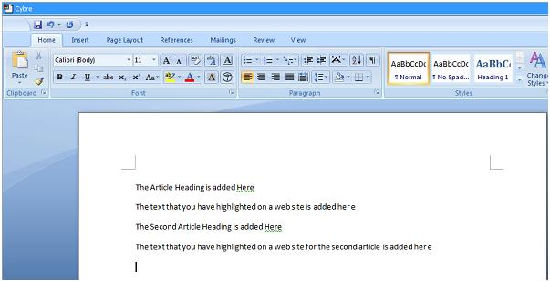 Cybre reader lite has a new function called GT for grab text to allows you to highlight text on any web site and it will capture this text to a word document allowing you to specify article heading, It will also allow you to append to an existing document or create a new one. The text will be captured into a word document. Students use this for gathering information for example their thesis.