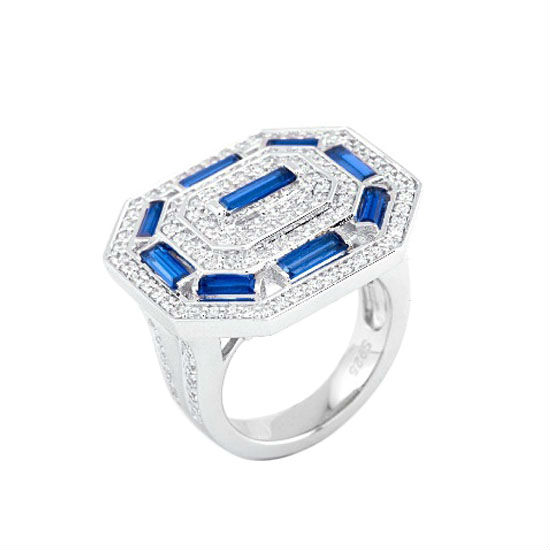 D2UK Handmade 925 Silver Rhodium Plated Ring with Simulated Sapphire & Cubic Zirconia Diamond