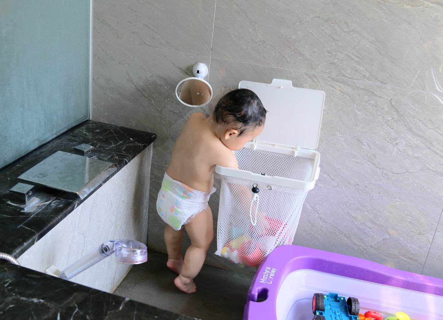 This stylish laundry net set with lid and strong suction power is tool-free and 100% waterproof that is suitable to be used in bedroom, bathroom or next to the washing machine to separate or collect clothes/toys. After removing the lid, you can just tighten the strap of the soft laundry bag and put it into the washing machine directly for cleaning.